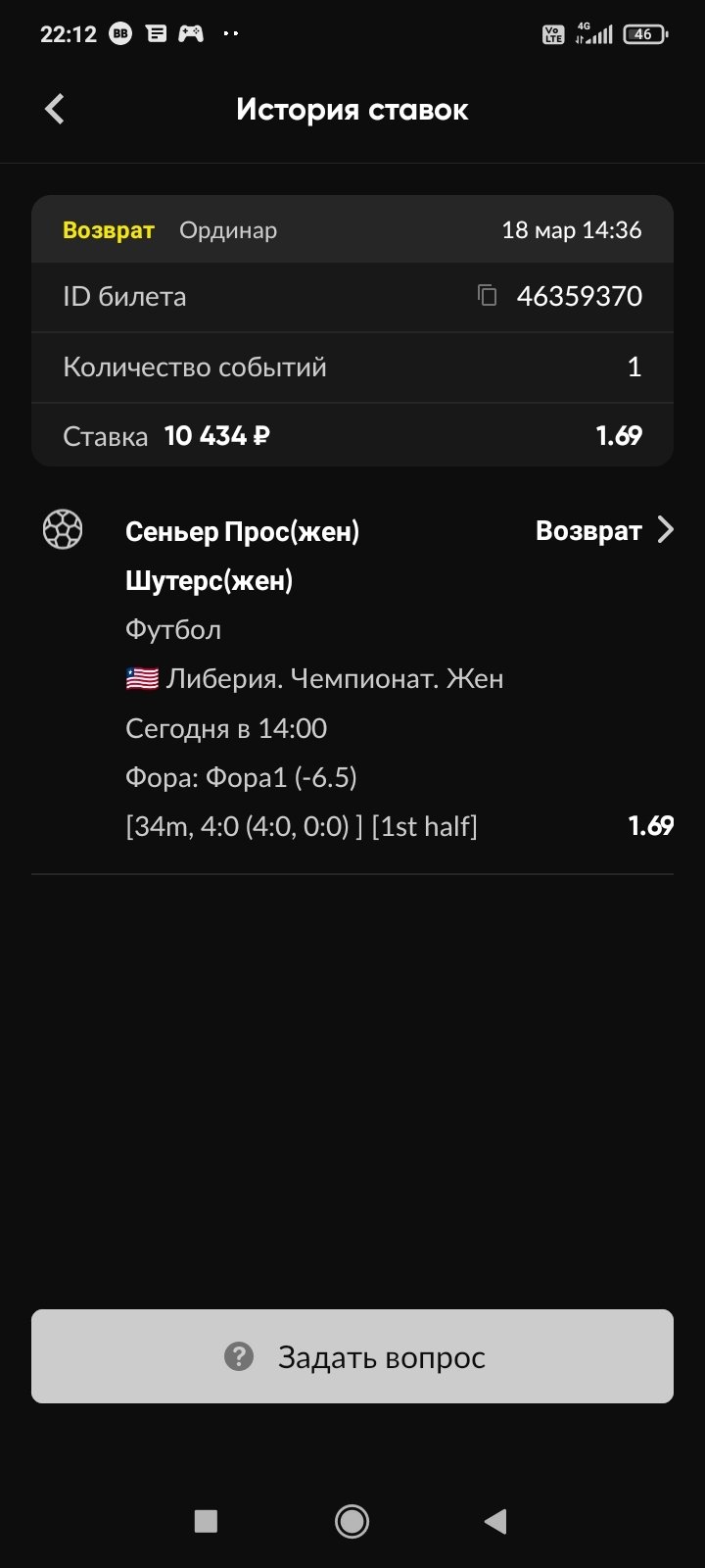 Там ещё есть много ставок, в чате сказали что у них подозрения на договорной матч. Почему они не обязаны мне предоставить доказательства их подозрений? В каком мы государстве живём, где творится этот беспредел власти и частных организаций