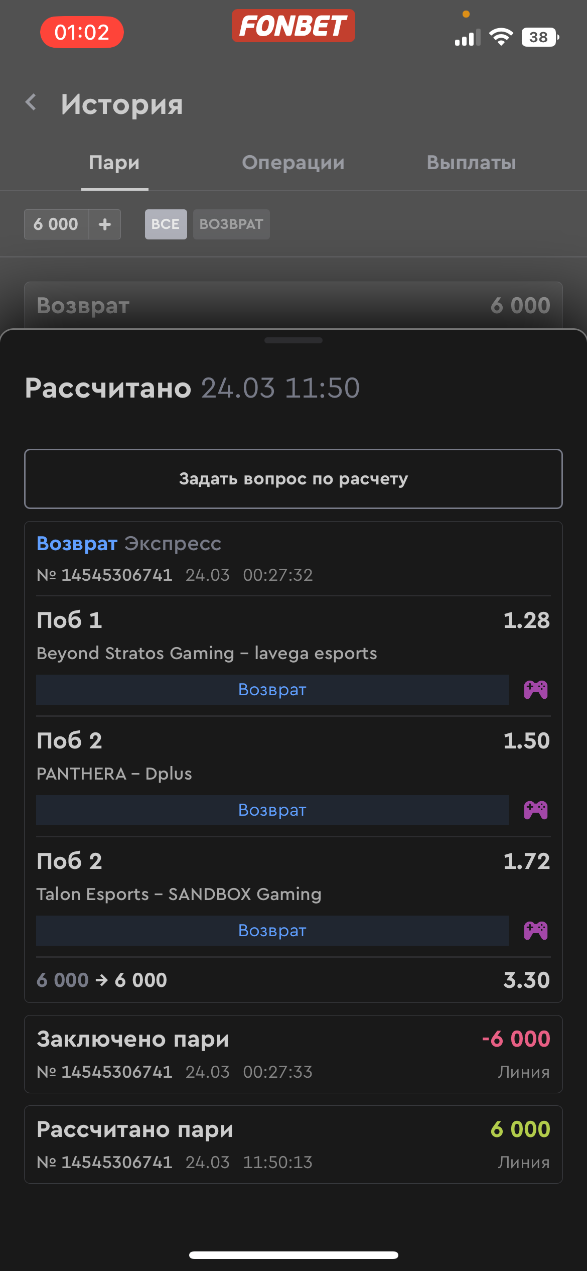 Здравствуйте. В данных матчах было изменение формата. В линии было указано, что матчи из одной карты, а на самом деле игрались из 3. Возврат в таких случаях в рамках правил.