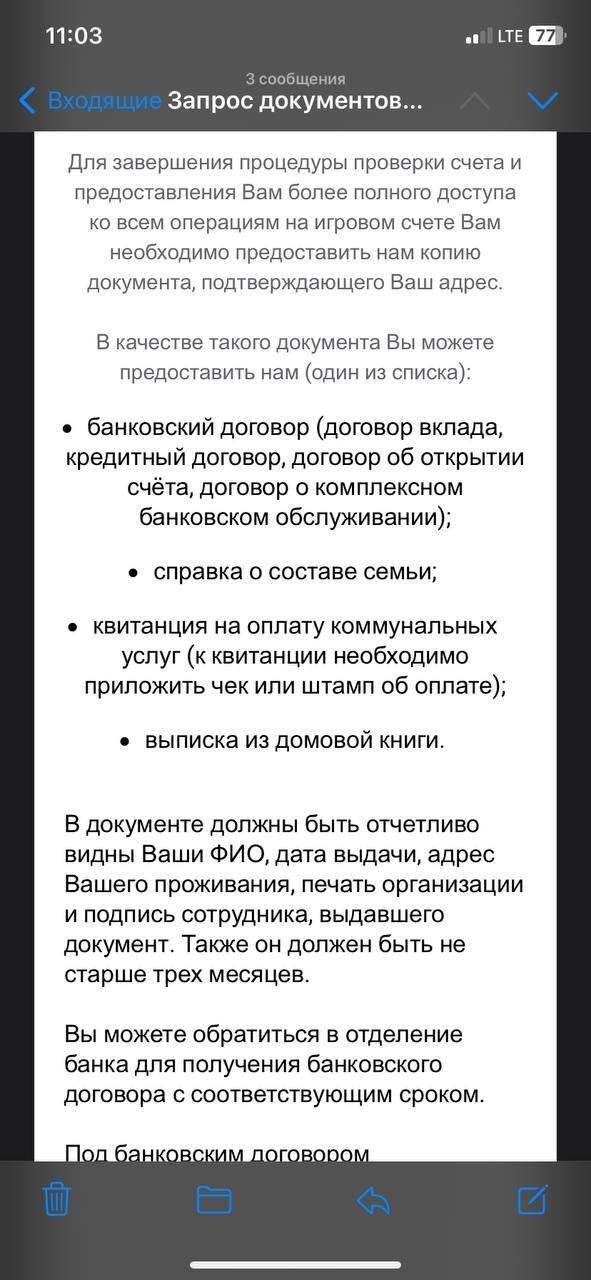 Букмекер запрошен по жалобе. Не нужно фото с документами в открытый доступ выкладывать.