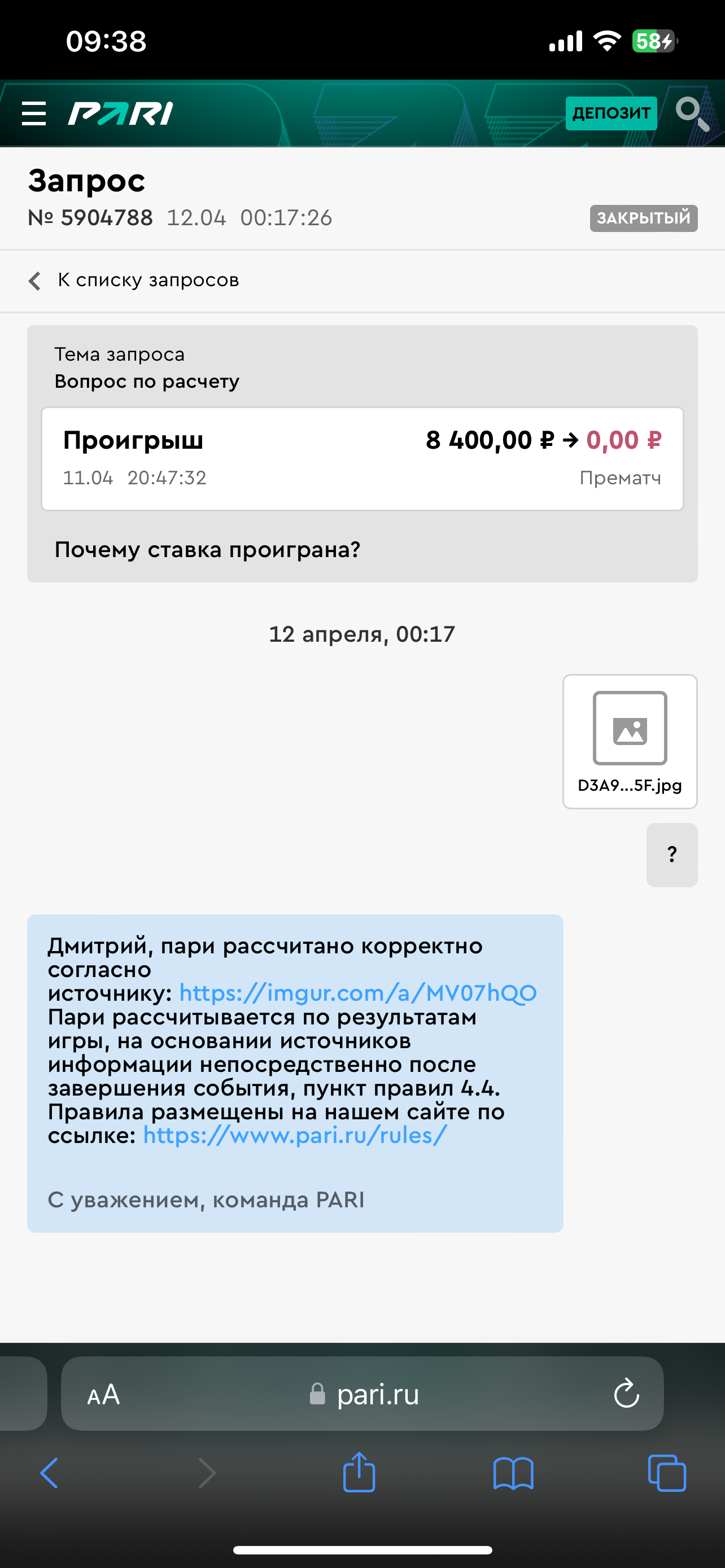 Некорректно принятое или рассчитанное пари