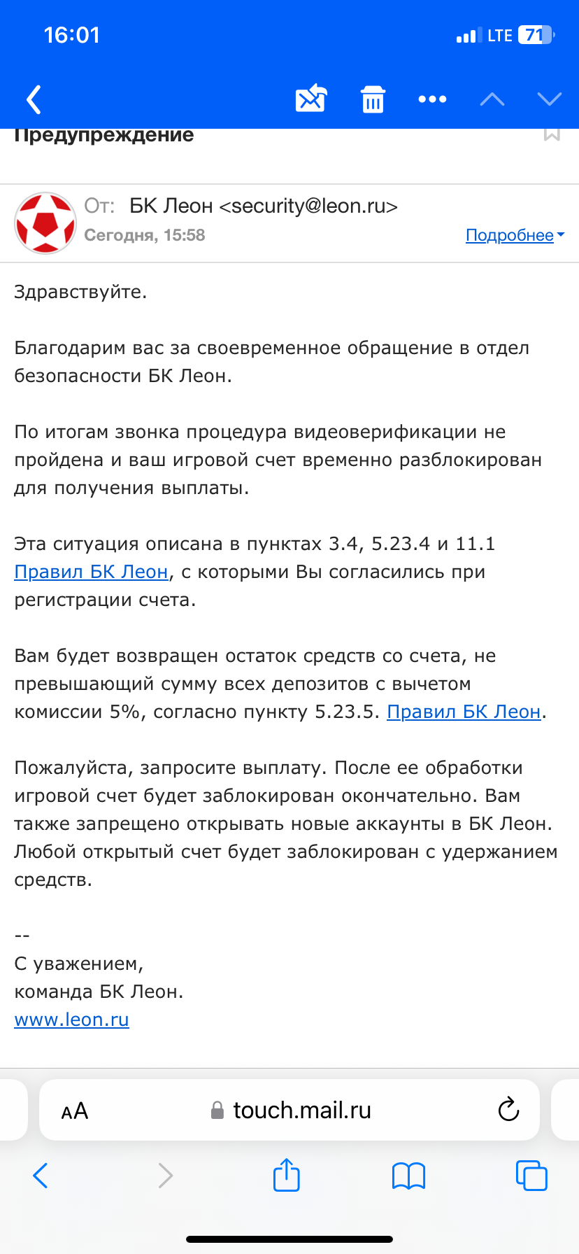 Здравствуйте! Я прошла верификацию , а они мне заблокировали мой аккаунт , и дали вывести только из 11.700 р -2000 р , это безумие !!! Что за не уважение к своим игрокам . Я просто в ужасе , все им рассказала на какие события ставила