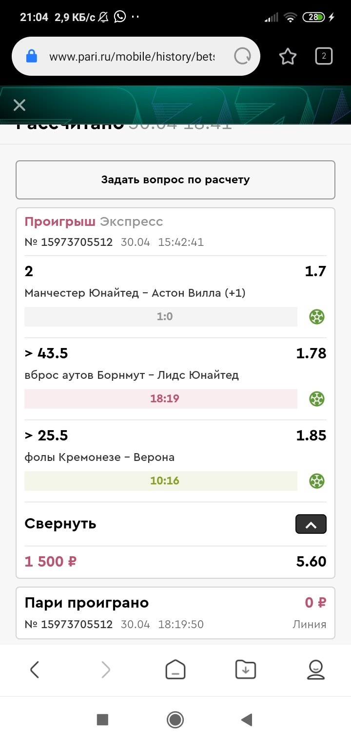 Матч борнмут Лидс Юнайтед ставка на ауты Матч закончился с счетом 21-28 Вот из вашего оф источника Вот видео где отчётливо всё видно Сумму указал 9 тыс так как было сделано 4 ординара на одно событие