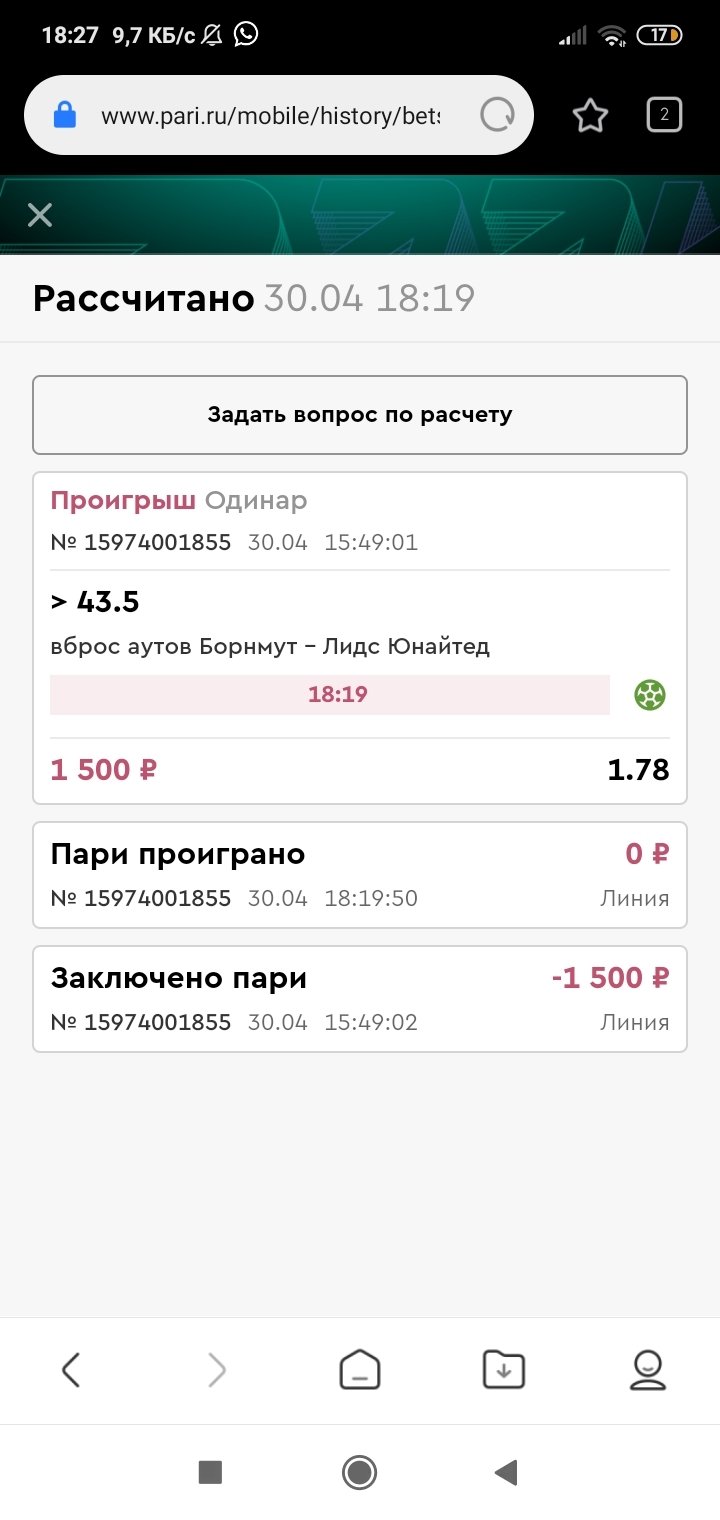Матч борнмут Лидс Юнайтед ставка на ауты Матч закончился с счетом 21-28 Вот из вашего оф источника Вот видео где отчётливо всё видно Сумму указал 9 тыс так как было сделано 4 ординара на одно событие