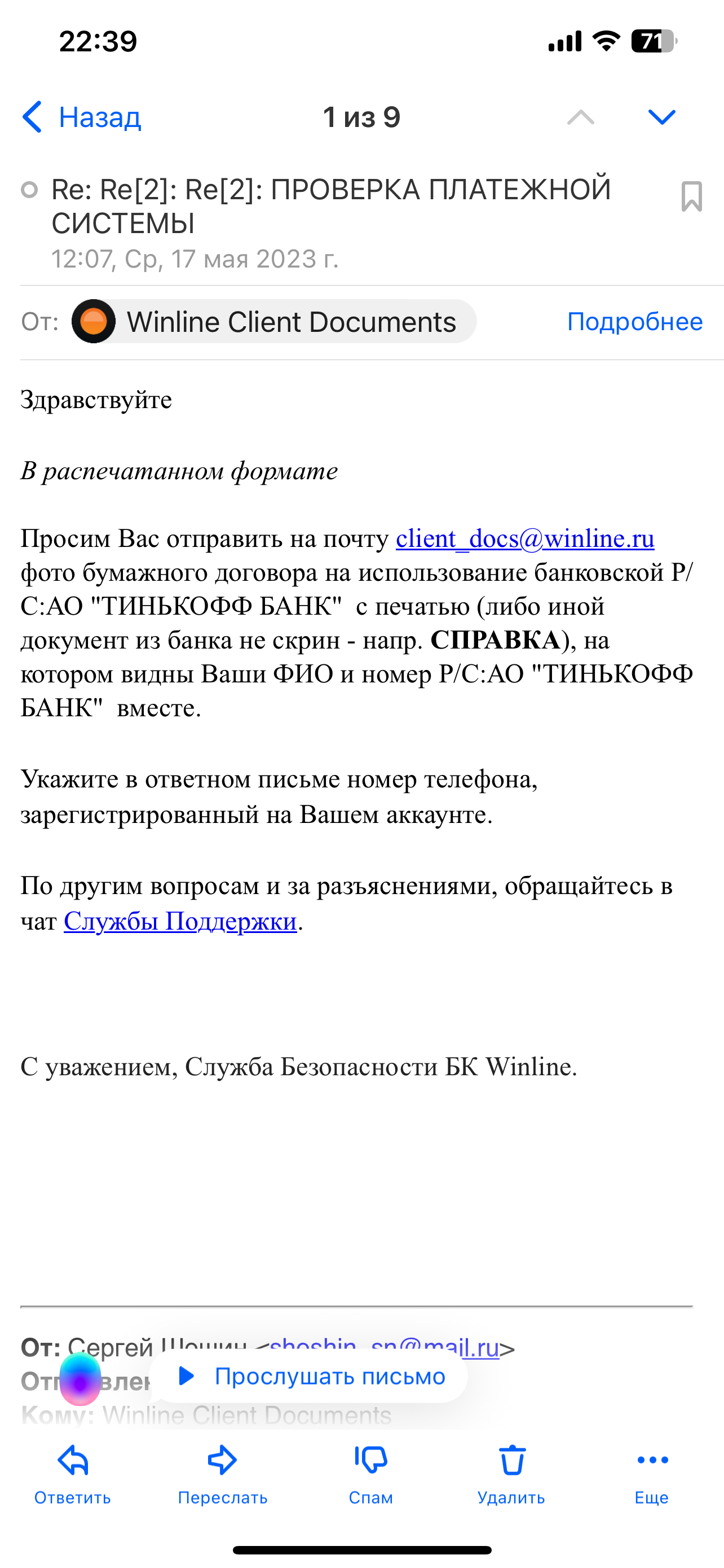 Добрый день, прошу снова запросить букмекера, отправил фото оригинального документа, селфи с ним, селфи с паспортом и договором - все приняли и молчат! Не знают уже что запросить
