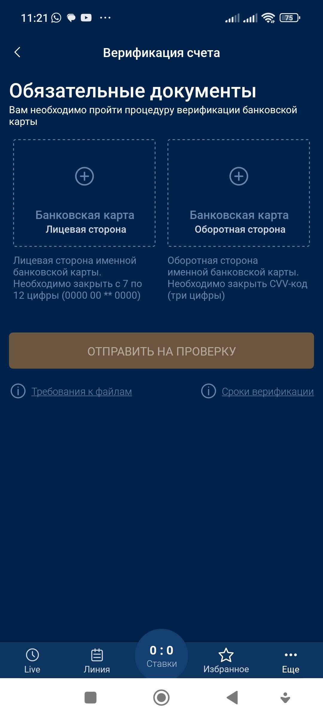 Здравствуйте. Верификация карты предусмотрена правилами БК. У вас какие-то сложности с предоставлением фото карты?