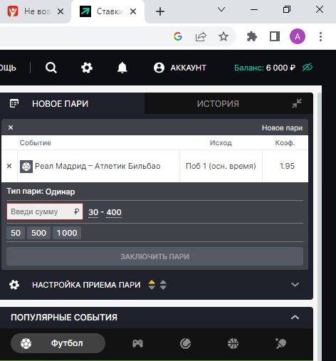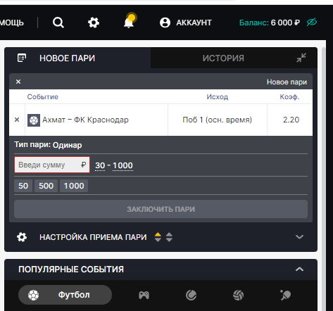 Здравствуйте, ткнул на РПЛ первый попавшийся матч, макс 1000р
