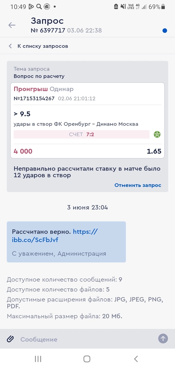 В матче Оренбург Динамо было 12 ударов в створ, букмекер рассчитал так, что якобы их было 9, хотя большинство источников пишет о 12 и я сам лично смотрел матч и насчитал 12 ударов в створ, прошу помощи, чтобы разобраться