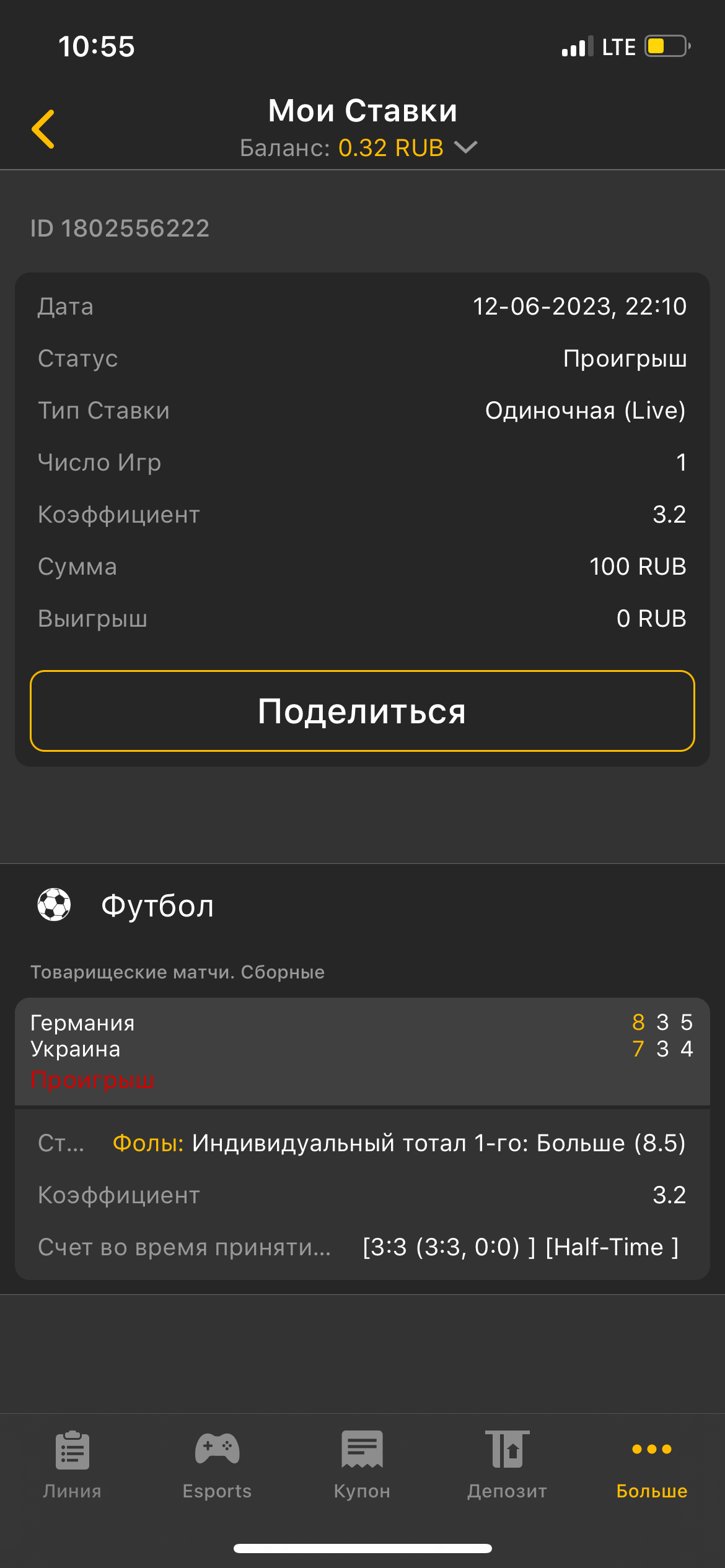 Товарищеский матч Германия Украина Взял ставку фолы индивидуальный Тотал Германии 8,5б На всех официальных ресурсах в том числе и на 9 фолов Германии . В мелбет рассчитали как проигрыш. Тех поддержка отвечает , что купон рассчитан правильно .