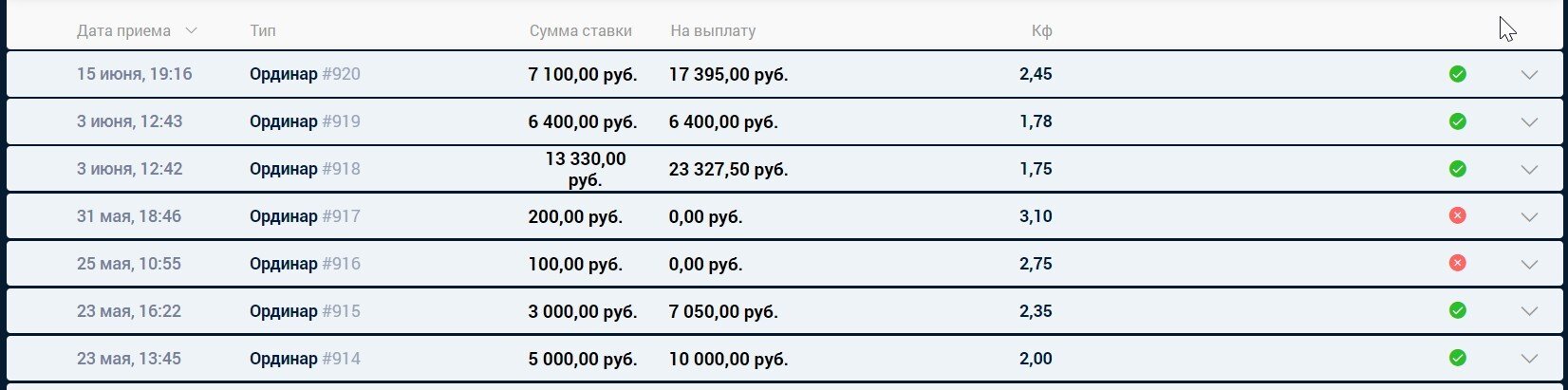 Полтора года назад уже писал жалобу на эту контору legalbet.ru/complaint/14032541/ , но тогда все разрулилось более или менее - подрезали максы, но в целом продолжил ставить. В один момент даже поднимали максы. В общем с тех пор поставил около 800 ставок на топ футбол и хоккей. В целом БК вел себя как истеричная баба, то выводя моментально, то маринуя вывод по 3 суток, то снижая максы, то увеличивая. С месяц назад кинули минивериф, попросили какой-то док, я скинул и снова открыли вывод. Еще тогда я ругался в чате и просил, что если я им не нравлюсь как игрок и ко мне есть претензии - делайте максы 100р и я ухожу, а все эти выводы по трое суток это игрушка дьявола. Но нет, сказали все тип-топ - играйте. В итоге сегодня без объявления причин меня просто отправили в бан на 60 дней. Тетка по телефону спокойным голосом сказала, мол так и так, нам от тебя ничего не надо - мы сами тут 60 дней подумаем и решим. Кстати 60 дней у них не предел. Могут и продлить (привет Винлайн и 365 дней). Прошу принять к сведению. Для интереса прикладываю мои коварные ставки. Играл только по ТОПам, никакой статистики и вторых лиг Бангладеша, но даже на это ЖБ линии они не способны платить. Так что если решили поиграть тут - советую несколько раз подумать и уйти на Фонбет. А лучше не испытывать судьбу на ставках в РФ - конторы за последний год-полтора дико скурвились ) Номер счета 1583572