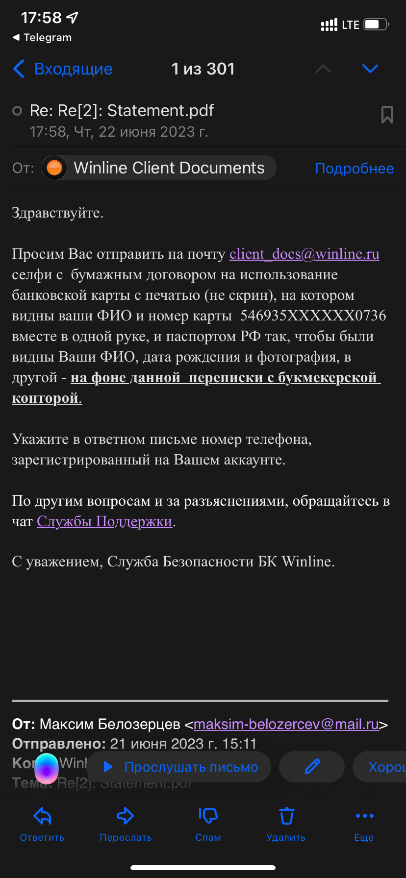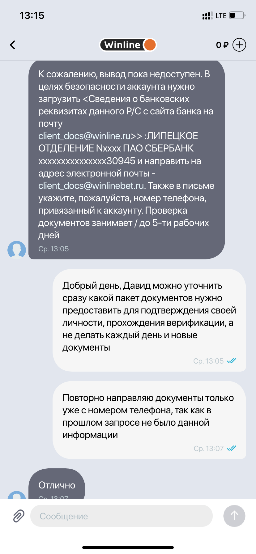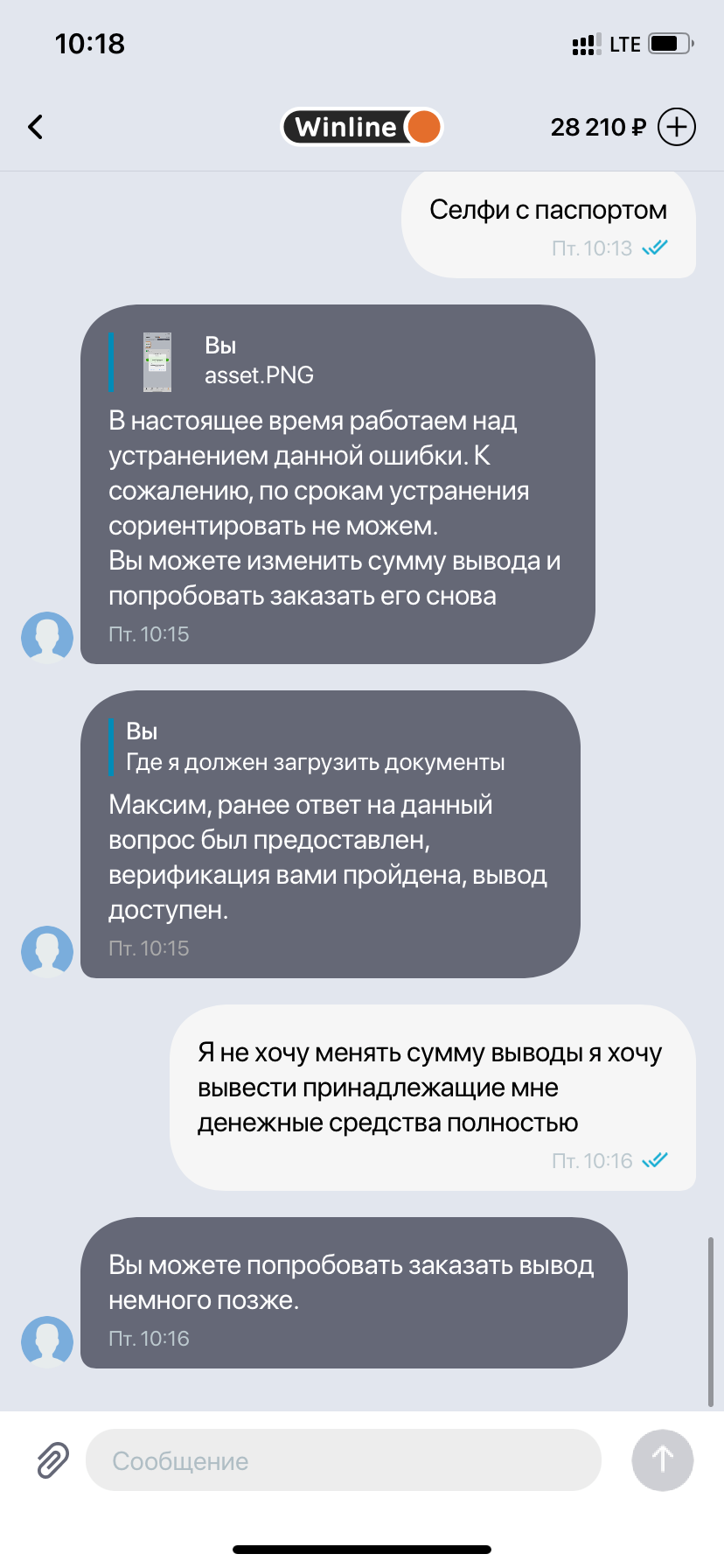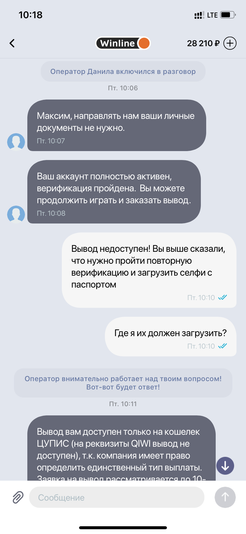 Добрый день, ранее в данной букмекерской конторе мною были осуществлены ставки на разные суммы, где были проигрыши и победы, однако никогда не было проблем с выводом денежных средств со счета, года мною была осуществлена ставка на событие бейсбол с коэффициентом , которые в процессе окончания игры оказалось выигрышным, после чего мною была предпринята попытка снятия данных денежных средств, находящихся на моем аккаунте на мой банковский счет, с которого было первоначальное зачисление на счет, после чего заявка на вывод средств заняла продолжительное рассмотрение в отличие от прежних выводов, а позже был вынесен отказ в выводе, однако ранее при выводе средств не возникало никаких проблем и не занимало по времени более 30 минут, после чего мною было написано в поддержку, на что сотрудник пояснил, что вывод доступен теперь доступен только на банковские реквизиты, заявка на вывод будет рассмотрена до 10-ти рабочих дней, что ущемляет меня в праве пользоваться моими денежными средствами, так как данная букмекерская контора удерживает принадлежащие мне денежные средства. Также теперь это единственный способ вывода так определила компания, также на вопрос по какой причине ввелись такие ограничения, сотрудник компании пояснил, что без каких-либо дополнительных комментариев, помимо этого ставки на события в данной букмекерской конторе заблокированы, ввелись ограничения на ставки без каких-либо сообщений. Прошу Вас разобраться в сложившейся ситуации и вернуть справедливость моих прав!
