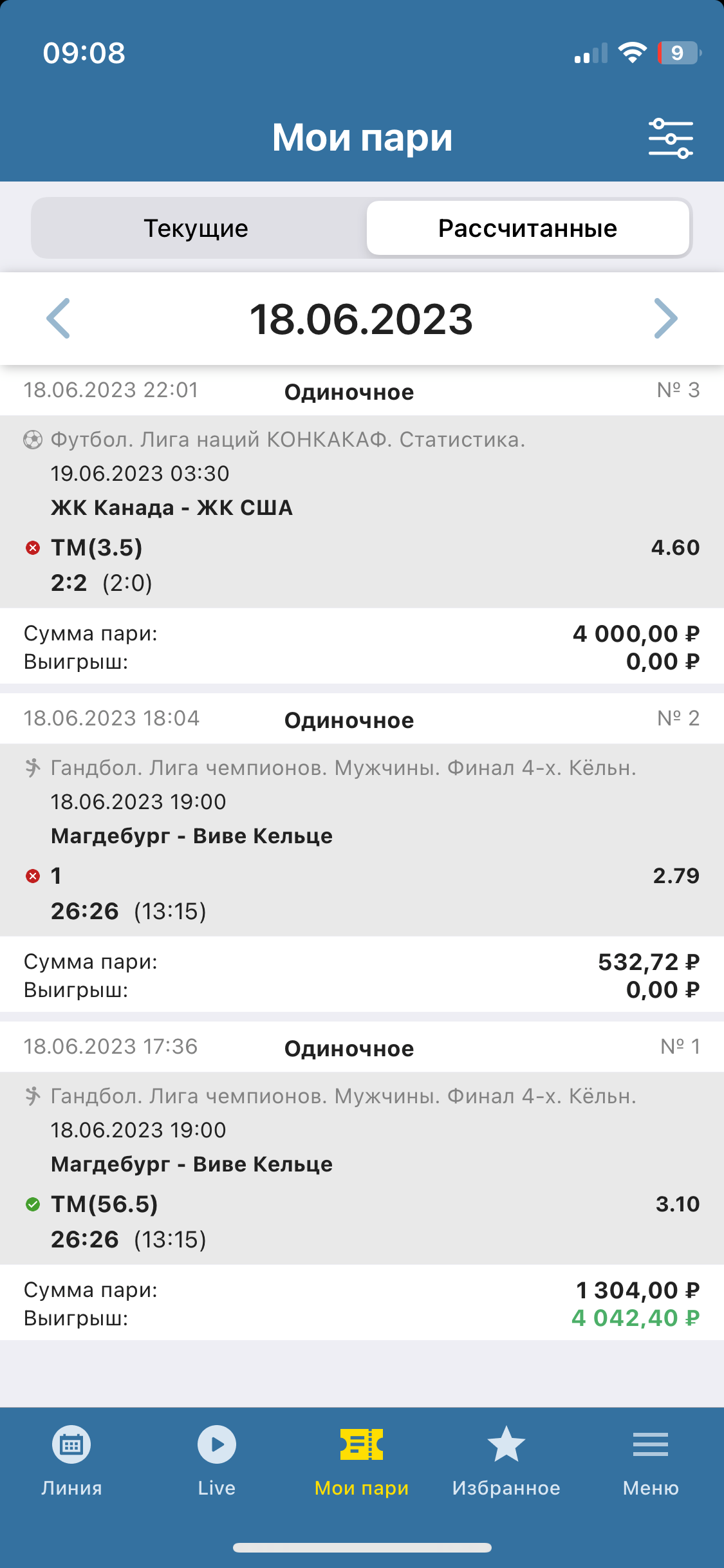 Делал ставку на матч лиги КОНКАФ, тотал меньше 3.5. Итог матча 2-0. Ставка рассчитана как проигрышная. На всех ресурсах где есть информация о данном событии счёт 2-0. На Бетсити 2-2.