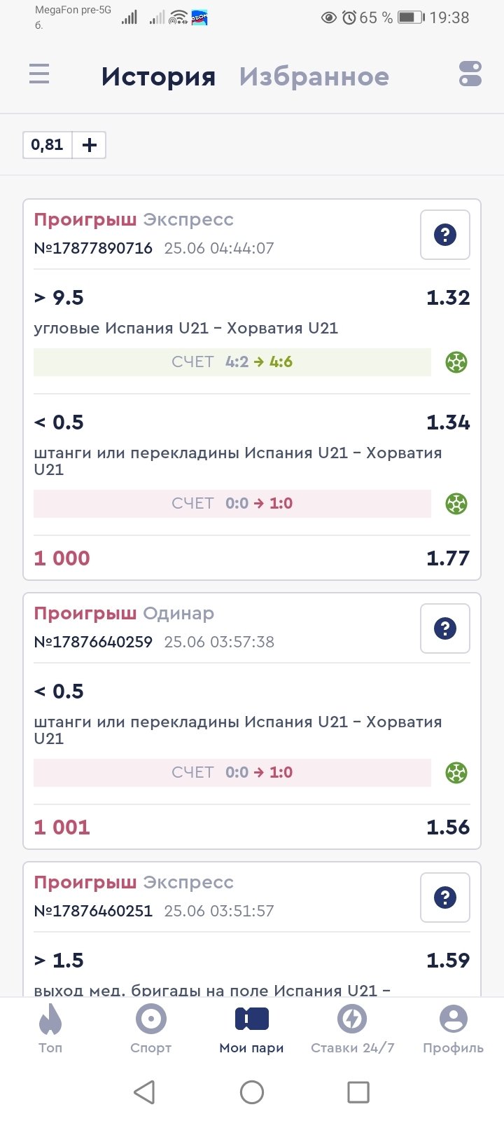 Вчера поставил 1000 рублей ещё на молодёжный футбол, испания-хорватия, что штанги не будет. Весь матч записан на виедеотрансляции и штанги не было. По правилам бк если мяч попадает в штангу но не касается ни судьи ни игроков и уходит за пределы поля, то это не сщитаеться что была штанга. Штанга была 55 и 71 минута мяч попал в штангу и не кого не задев спокойно ушёл за пределы поля. 1000 процентов моя ставка сыграла. Прошу вас разобраться и наказать и заставить букмекеры фонбет пересщитывайте ставку и выплатить выйгрыш. Я выйграл 100000000 процентов разберитесь пожалуйста