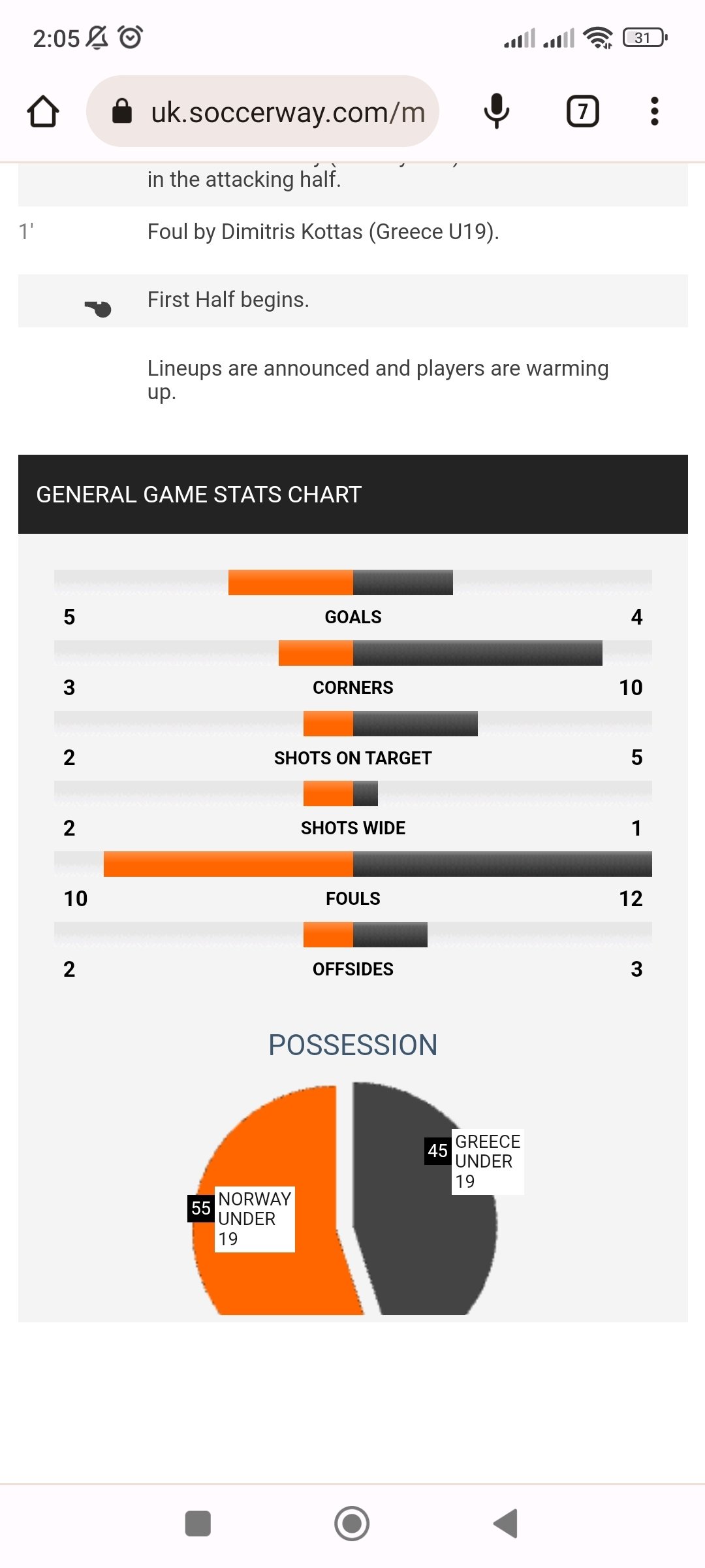 По трансляции у норвегии фолы на 12,16, 16,49 фол, 32.07 фол, 40.06фол , 46,54 фол , на , и на 25 минуте пишется что офсайд, но там камера показывает повтор,есть свисток но не видно там был фол или офсайд потом водопой, и опять розыгрыш мяча не видно арбитр с поднятой рукой или нет