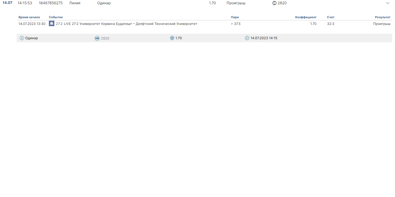 Контора не указала время, сколько должен идти матч по водному полу, по стандартному матч по водному полу идет 4х8, я и ставил на такое время, но после ставки контора изменила время и поставила 4х7, то есть ввела меня в заблуждение и лишила меня таким способом денежных средств, но по их правилу это не нарушение, то есть они могу не ставить сколько идет матч и тем самым просто тупо воровать деньги, но это нарушение правил и честность игры, то есть изначально не правильное указано событие, вернуть деньги они не хотят.