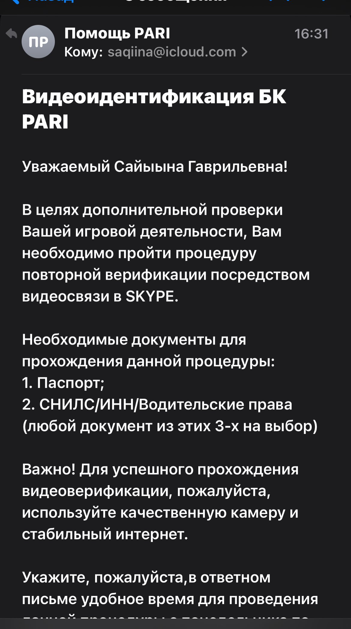 Добрый день, по информации букмекера, Вы сейчас на стадии повторной верификации. Ответ ориентировочно завтра будет.