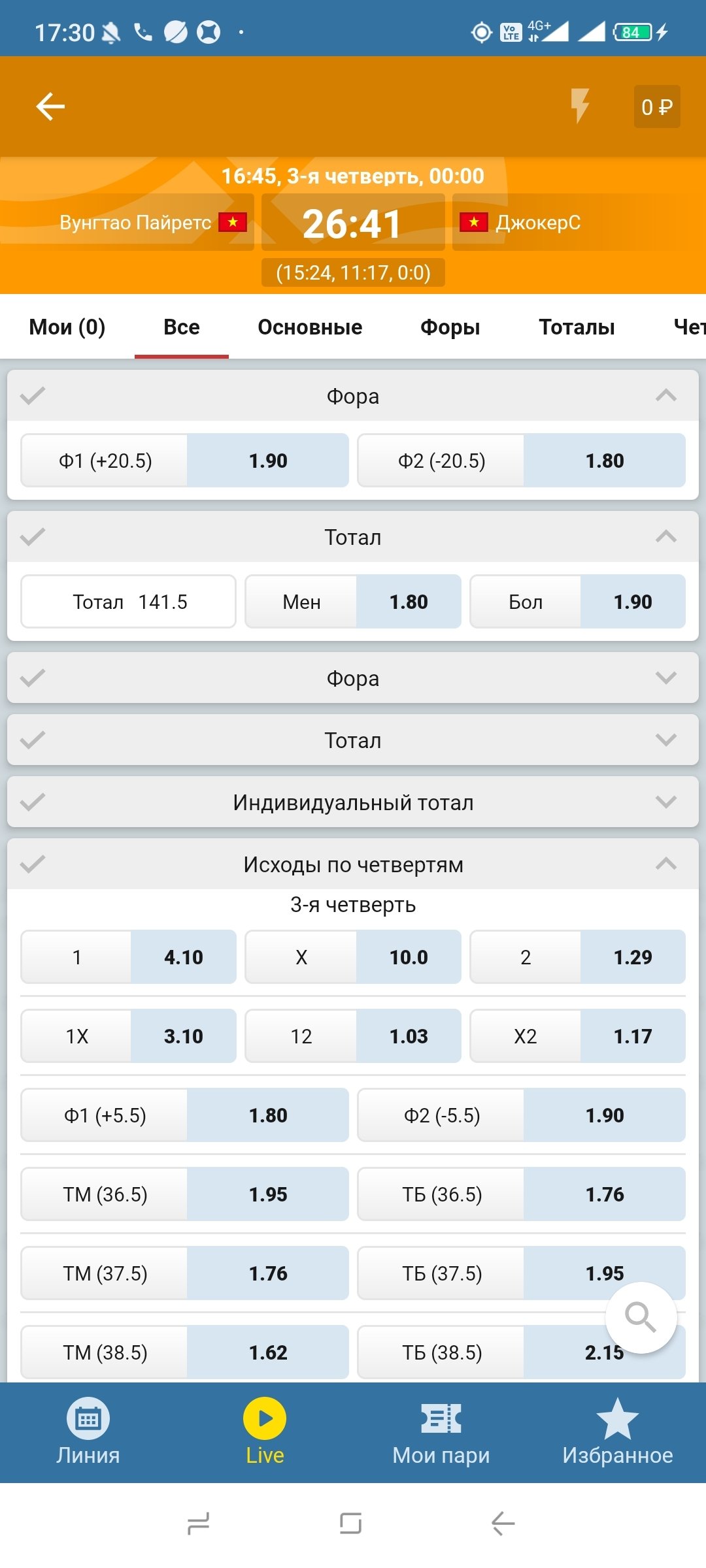 Добрый день. Поставил ставку за один коэфициент в лайве на 3 четверть за Кэф до начала 3 четверти 13 минут было они резко взяли и поменяли коэфициент на .не обосновано я не стал бы ставить на жто событие