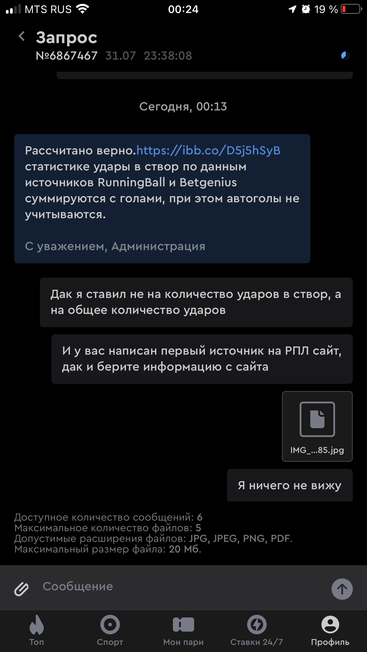 Поставил ставку на общее количество ударов в матче Спартак Балтика , в итоге во всех источниках было ударов гораздо больше, да и матч я смотрел. Но в итоге по их источнику что то не сложилось, хотя первый источник указан сайт рпл