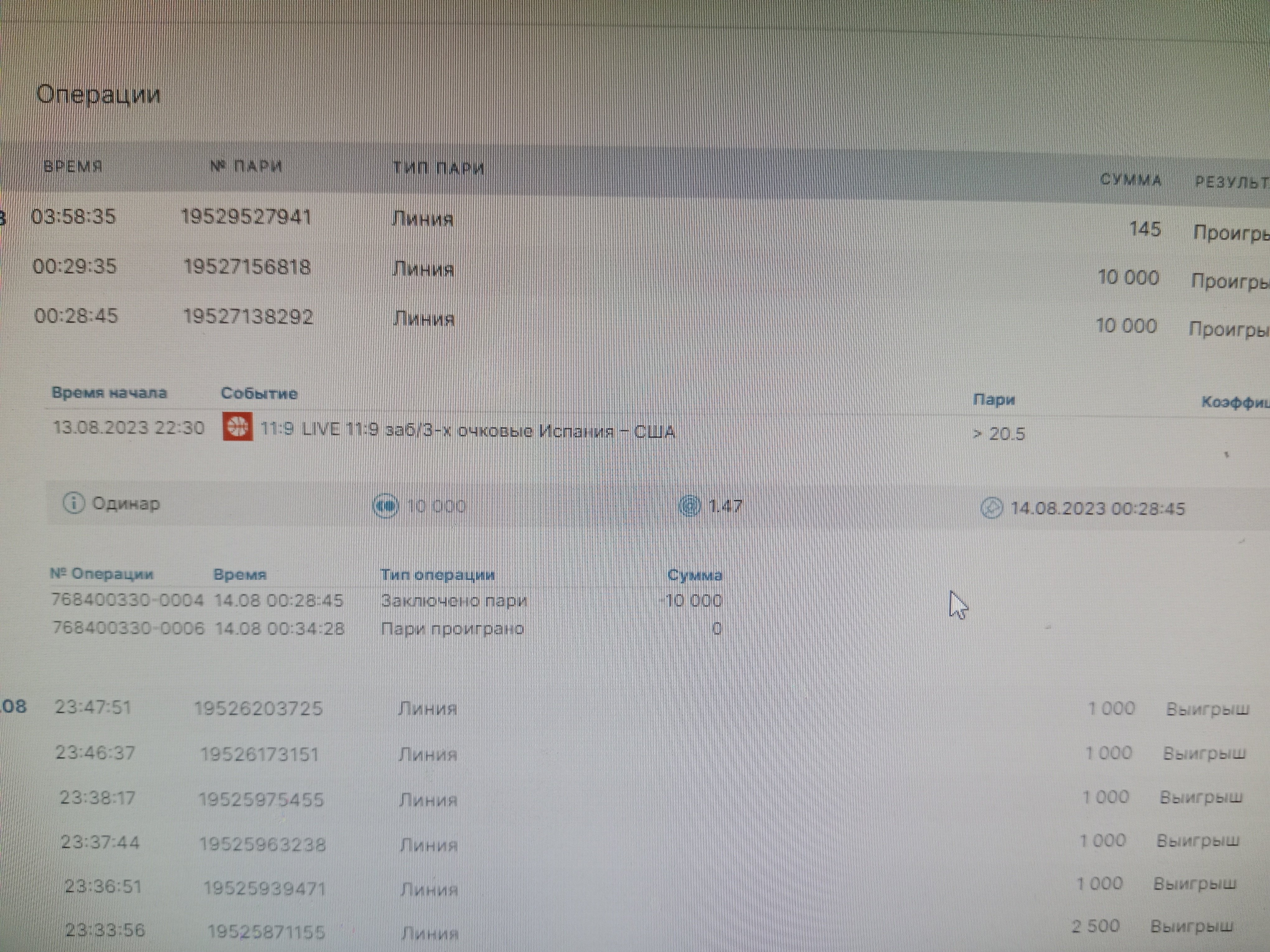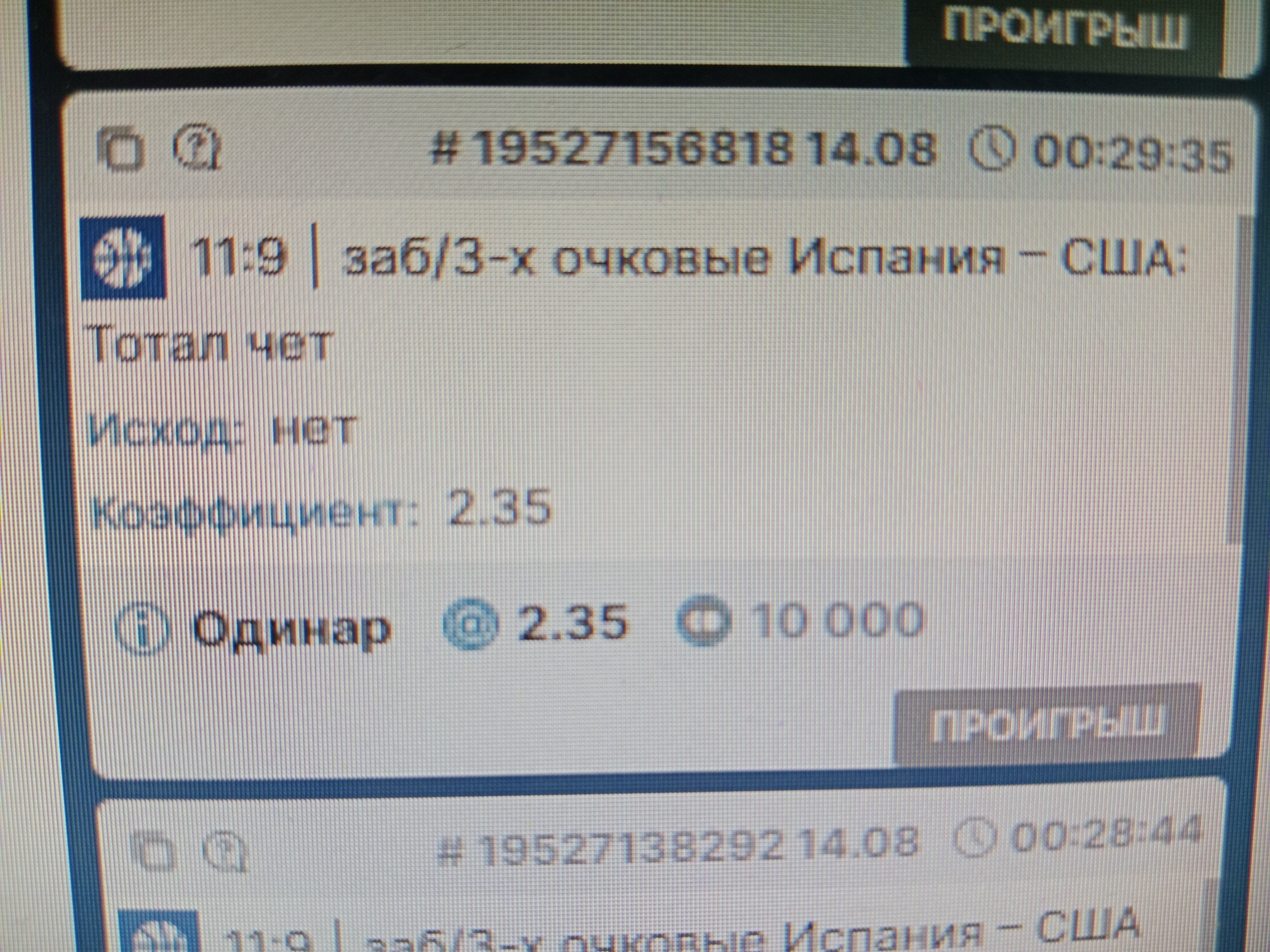 Доброй ночи .значить так ставил в ППС фонбет на баскетбольный матч США -Испания .сам смотрел матч и на минуте 31-37 и 33-39 сша забивала 3 очковые из которых только одну добавили в четвертую четверть .матч есть в Ютубе где повторе можно спокойно увидеть что 3 очковые броски попадания были от США .букмекер отказывается в перерасчете