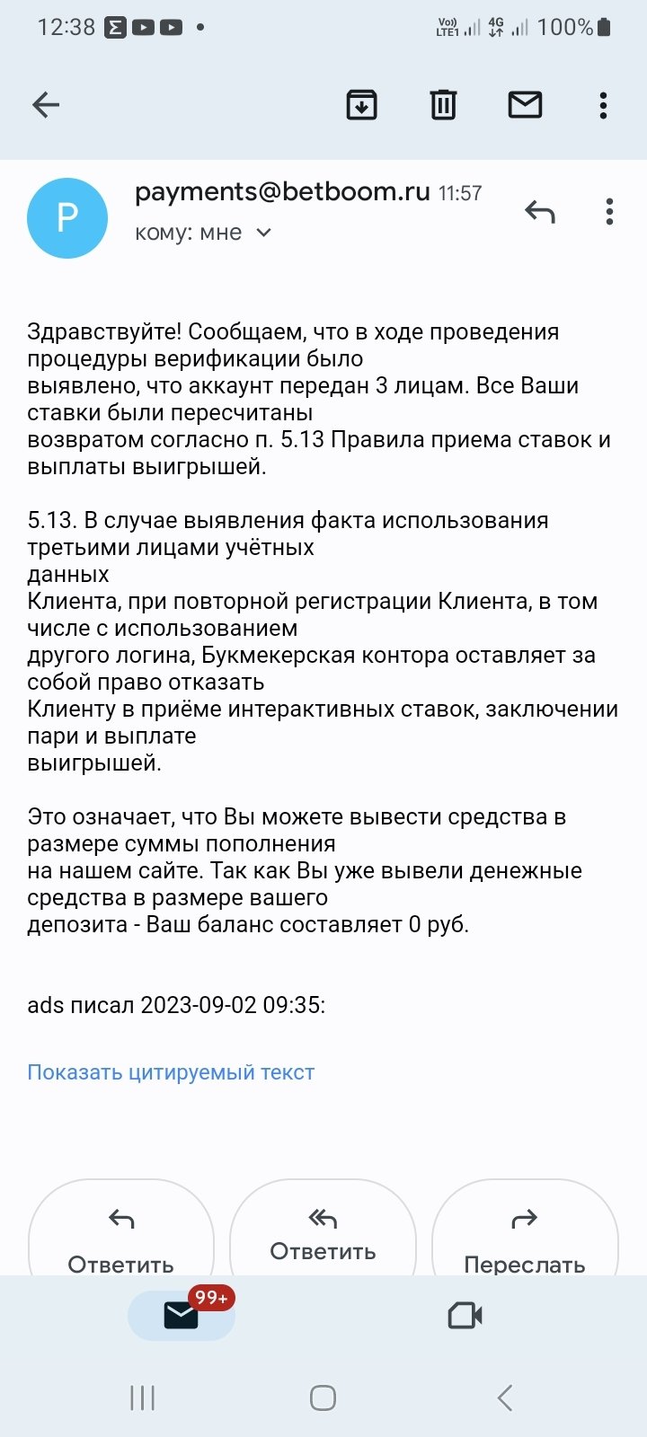 Арбитраж Легалбет получил комментарии и разъяснения от букмекера. Счет закрыт, а выигрыш аннулирован по решению СБ за нарушение правил – передача аккаунта третьим лицам. Действия БК в рамках правил.