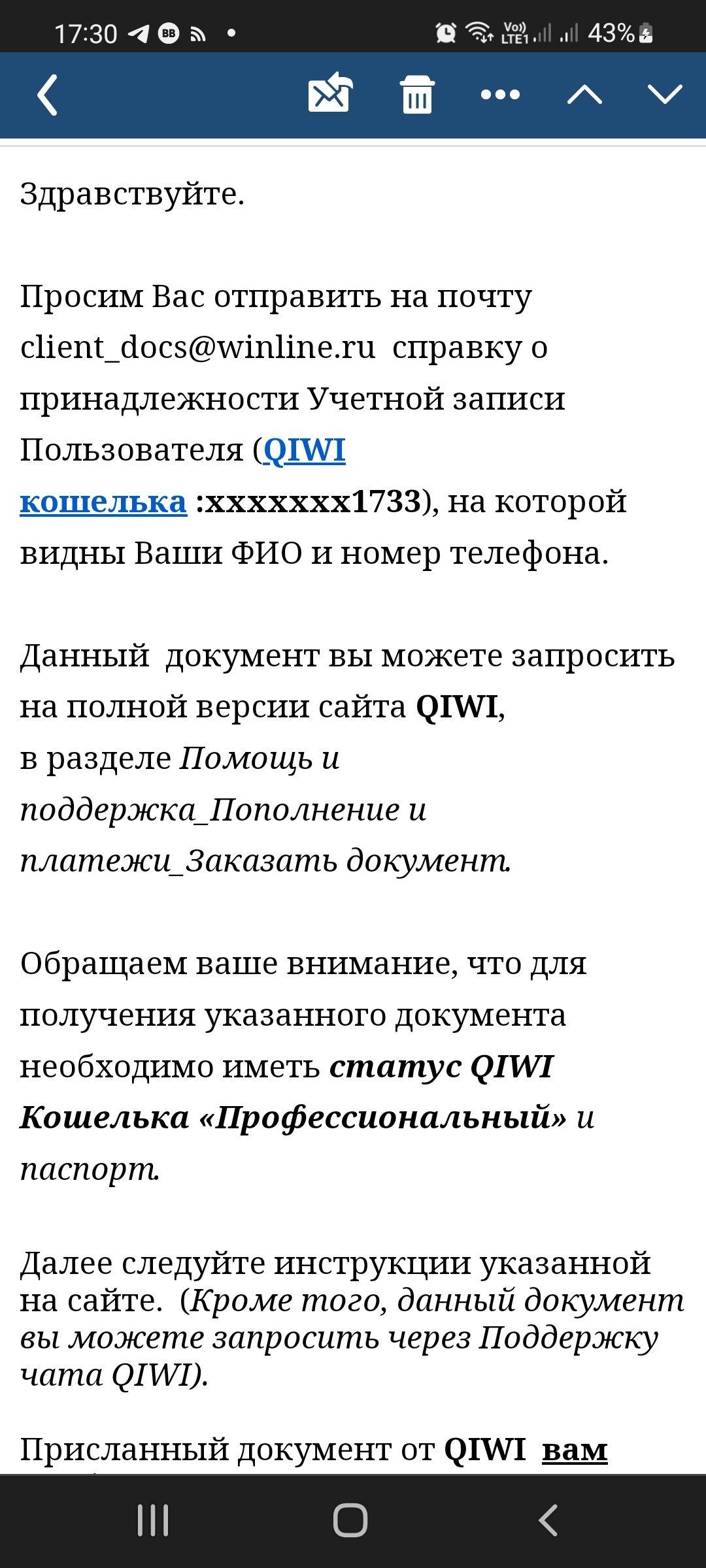 Я создал киви кошелек получил статус про, ечли пришлют справку я отправлю им конечно, что вот мой телефон и ФИО но эти придуманные 4 последние цифры , что в почте понятно будут отличаться я думаю