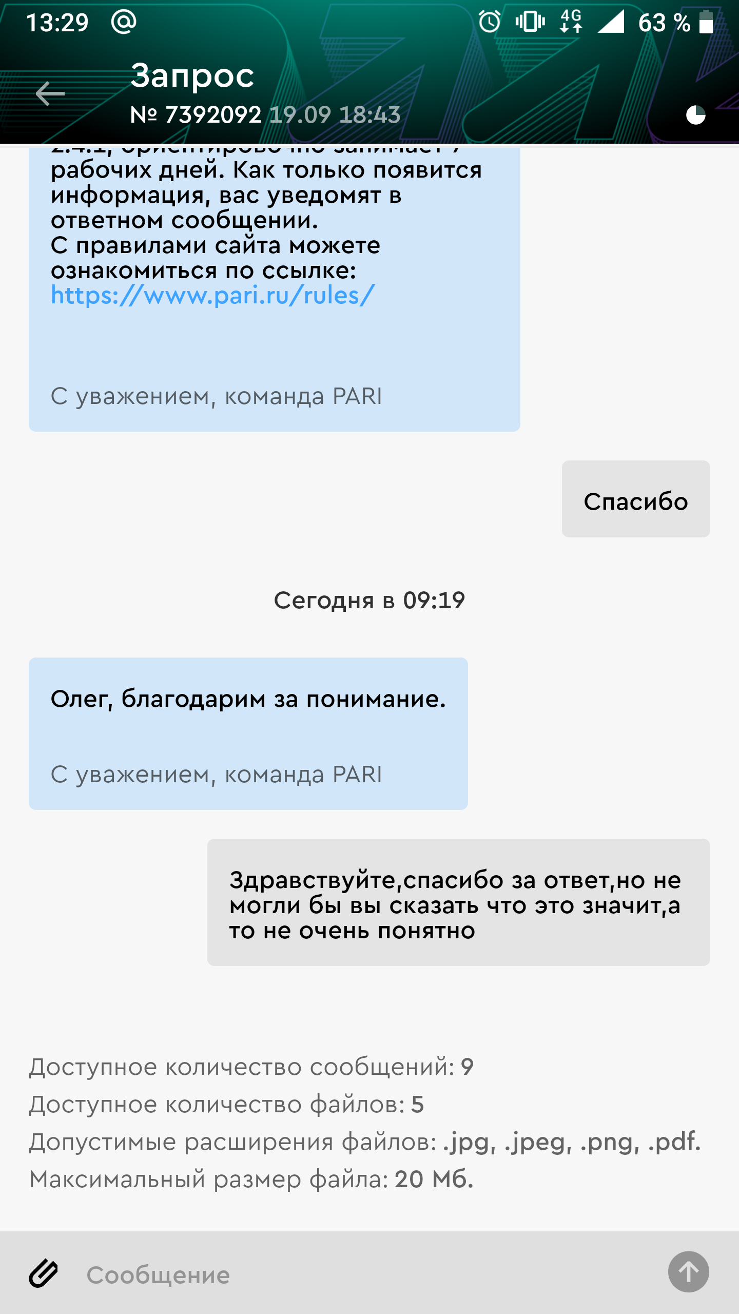 Здравствуйте,я всегда играл на БК фонбет,но недавно ,примерно месяц назад друг посоветовал поиграть на пари ,так как там дают фрибеты и всякие акции,а на фонбет за время ставок в течении 7 лет примерно мне ничего не давали,вот и решил перейти попробывать,зарегистрировался ,заполнил все данные что требовали,получил статус основной через госуслуги,так же ципус у меня в полном порядке много лет и играю только со своего телефона и со своего аккаунта и никому не даю,нет ни мультиаккаунтов и ничего с этим связано,все по правилам.Так вот ситуация в следующем,немного проиграв денег я так же ставил и все же мне удалось выиграть,ставил ночью, экспресс на нельсколько исходов их разных лиг(тоталы)после выйгрыша решил поставить на вывод,после чего мне выплату приостановили и попросили верификацию ,прошел успешно ответил на вопросы что ставил и куда выводил,после чего написали что нужно дополнительную и скинуть все необходимые документы,все отослал ,вот жду уже три дня ,понимаю что жалоба пока не особо обосновано так как не прошло 7 дней на проверку документов,но я сильно переживаю потому что я уверен точно что у меня все в порядке,нет ни каких дополнительных аккаунтов и куда ставил на какой вид спорта все понимаю,но боюсь что просто заблокируют и все,почитав такие же жалобы и отзывы.Прошу вас помочь мне в моем вопросе.ц меня такое впервые за все время ставок и игр на БК.спасибо