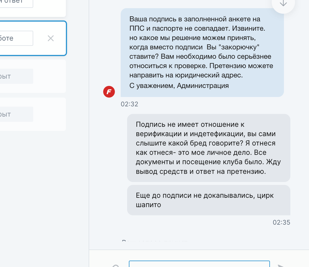 С г. на личный счет ООО «ФОНКОР» мной были переведены ряд сумм и совершенно около 30-50 прогнозов на спортивные события ( до матча ) по линии. После ряда выигрышных прогнозов (ставок) сумма на счету стала 1 746 130 ( один миллион семьсот сорок шесть тысяч сто тридцать ) рублей.Все указанные переводы подтверждаются электронной подписью «ЕДИНЫЙ ЦУПИС».Далее я решил вывести сумму выигрыша, однако с Вашей стороны последовал отказ, который Вы обосновывали причиной запроса документов, подтверждающих мою личность.Однако я проходил полную идентификацию своей личности посредством «Единого ЦУПИС», что регулируется законодательством: в соответствии с Распоряжением Президента РФ №236-рп от 25 августа 2021 года ООО НКО «Мобильная карта» была назначена единым центром учета переводов ставок букмекерских контор и тотализаторов. ЕДИНЫЙ ЦУПИС осуществляет свою деятельность в строгом соответствии с: Федеральным законом от № 244-ФЗ «О государственном регулировании деятельности по организации и проведению азартных игр и о внесении изменений в некоторые законодательные акты Российской Федерации»; Федеральным законом от № 493-ФЗ «О публично-правовой компании «Единый регулятор азартных игр» и о внесении изменений в отдельные законодательные акты Российской Федерации»; Федеральным законом от № 395-1 «О банках и банковской деятельности».Так, ранее я зарегистрировался на сайте , подтвердил свою личность посредством подтверждения личности через ЕДИНЫЙ ЦУПИС. Номер моего аккаунта: № 21473265. Телефон: +7 951 493-73-10.Таким образом, еще на моменте регистрации мной были предоставлены документы, подтверждающие личность, что позволило Вам принимать от меня ставки, и, соответственно, выплатить выигрыш. Во всяком случае c мной были предоставлены:Мой паспорт гражданина РФПаспорт Гражданина РФ на просветРеквизиты банковских карт ( скриншот личного кабинета онлайн банкинга )Неоднократно фото с паспортом, листом бумаги и ФИО написанным на листеПроведена видеоконференция посредством SkypeА также я лично посещал клуб для прохождения очной ПОВТОРНОЙ идентификации в клуб находящийся по адресу г. Хабаровск ул. Льва Толстого д. 16Все запрашиваемые Вами документы были предоставлены мной в срок и надлежащим образом, таким образом, выплата выигрыша от ООО «ФОНКОР» должна быть произведена, но на настоящий момент в нарушение требований законодательства не осуществлена. Все требования по верификации и идентификации моей личности в соответствии законодательством Российской Федерации, а также пункта правил «Соглашения о выигрыше» 3.4 мной были выполнены. Фото документов предоставлены- видеоконфереция проведена- ПОВТОРНАЯ ИДЕНТИФИКАЦИЯ в КЛУБЕ ПРОВЕДЕНА!Отказ в выплате выигрыша полностью противоречит «Правилам приема ставок и выплаты выигрышей». Прошу повлиять на БК.