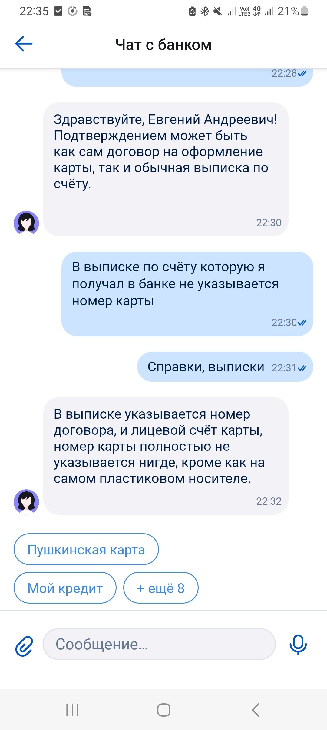 Здраствуйте , почта банк оффициальный ответ банка что номер карты указывается только на самой карте в документах используются только реквизиты счёта привязаного к карте