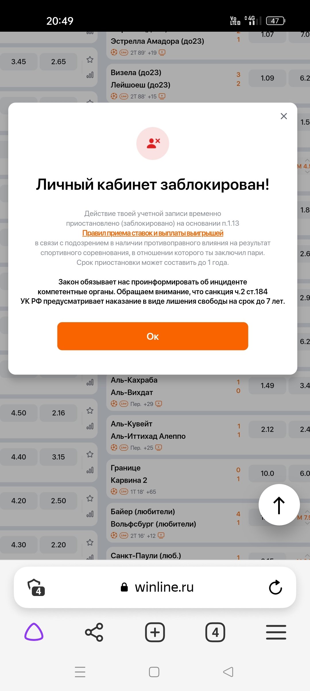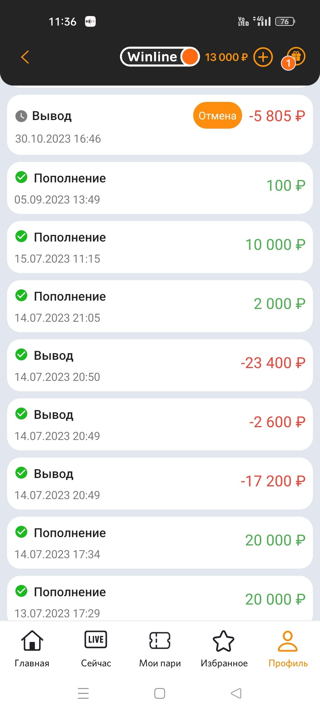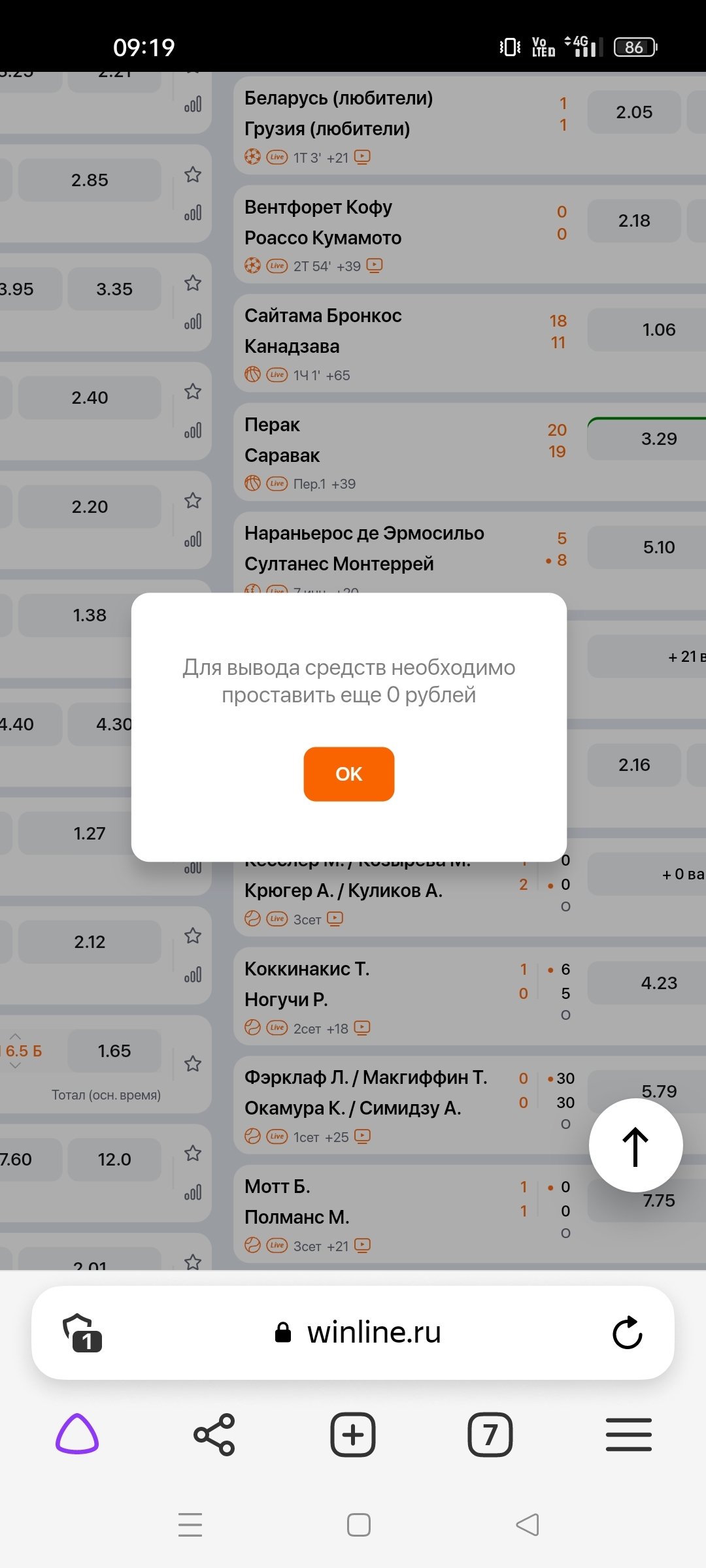 Здравствуйте! Играла в БК Винлайн с с г. Вывод денег осуществился без проблем. . 23 г. сделала ставку на 10000 р. Ставка сыграла.Запросили прохождение видеоверификации. Прошла эту процедуру. После этого естественно порезали максимум ставки на событие до 100 р. и вывод средств стал доступен только на счёт кошелька Цупис. После многочисленных попыток вывести деньги итог один-на 9 день деньги опять возвращаются на счёт БК. И естественно карта с которой пополняла счёт исчезла из списка доступных для вывода, только кошелек ЦУПИС. Даже депозит который внесла перед этой ставкой в размере 10 т. не возвращают. Помогите пожалуйста разобраться в данной ситуации!!!