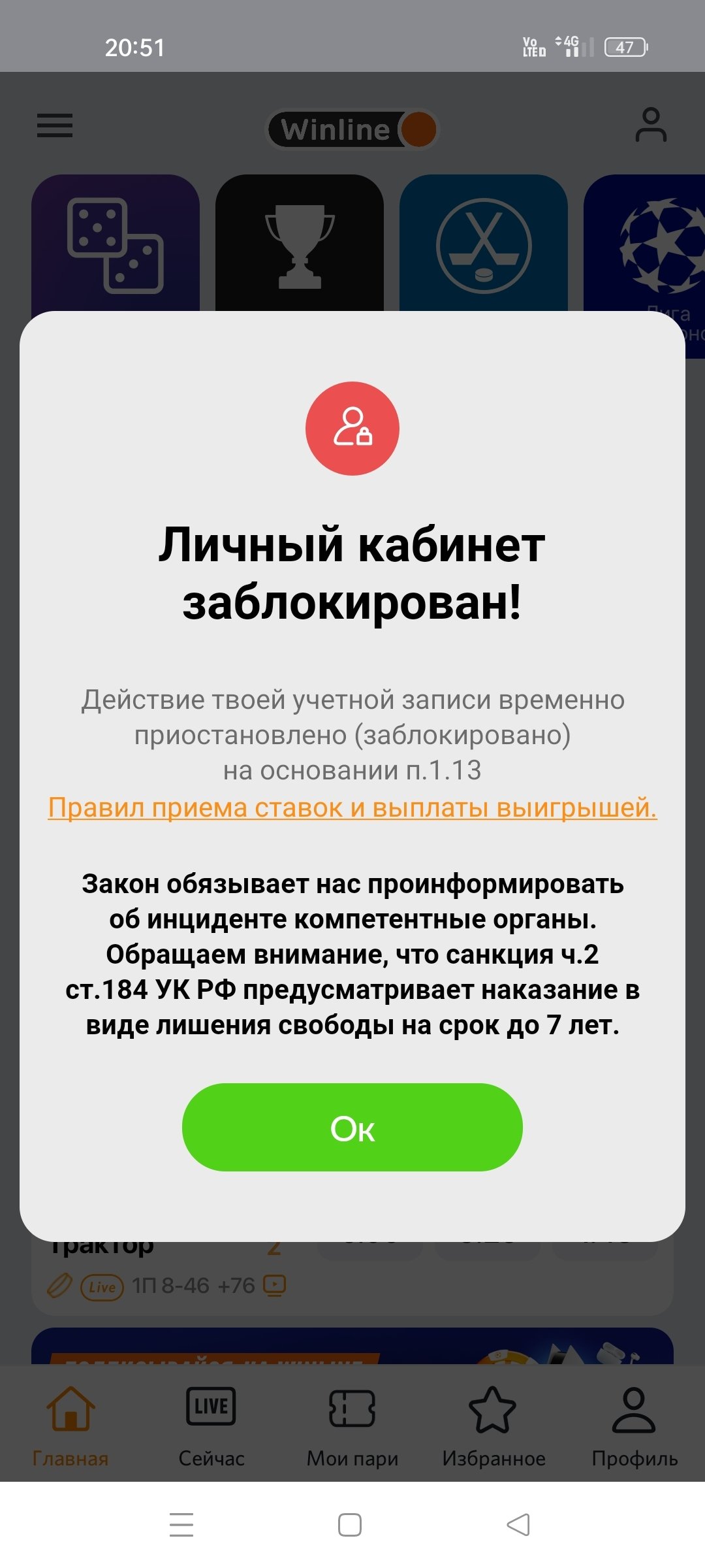 Здравствуйте! Как я и ожидала что постоянные требования о предоставлении различного рода документов и выписок из банка всего лишь затягивание времени со стороны БК. Сегодня мне заблокировали доступ к моему аккаунту в БК сославшись на пункт 1.13🤣. Каким это образом я повлияла на результат матчей по настольному теннису про лиги Чехии!? Почитав жалобы на эту БК на Вашем сайте понятно что это далеко не единичный случай по прикарманиванию чужих денег этой гнилой конторой! Но все же надеюсь на вашу компетенцию и положительный исход в решении моей проблемы.