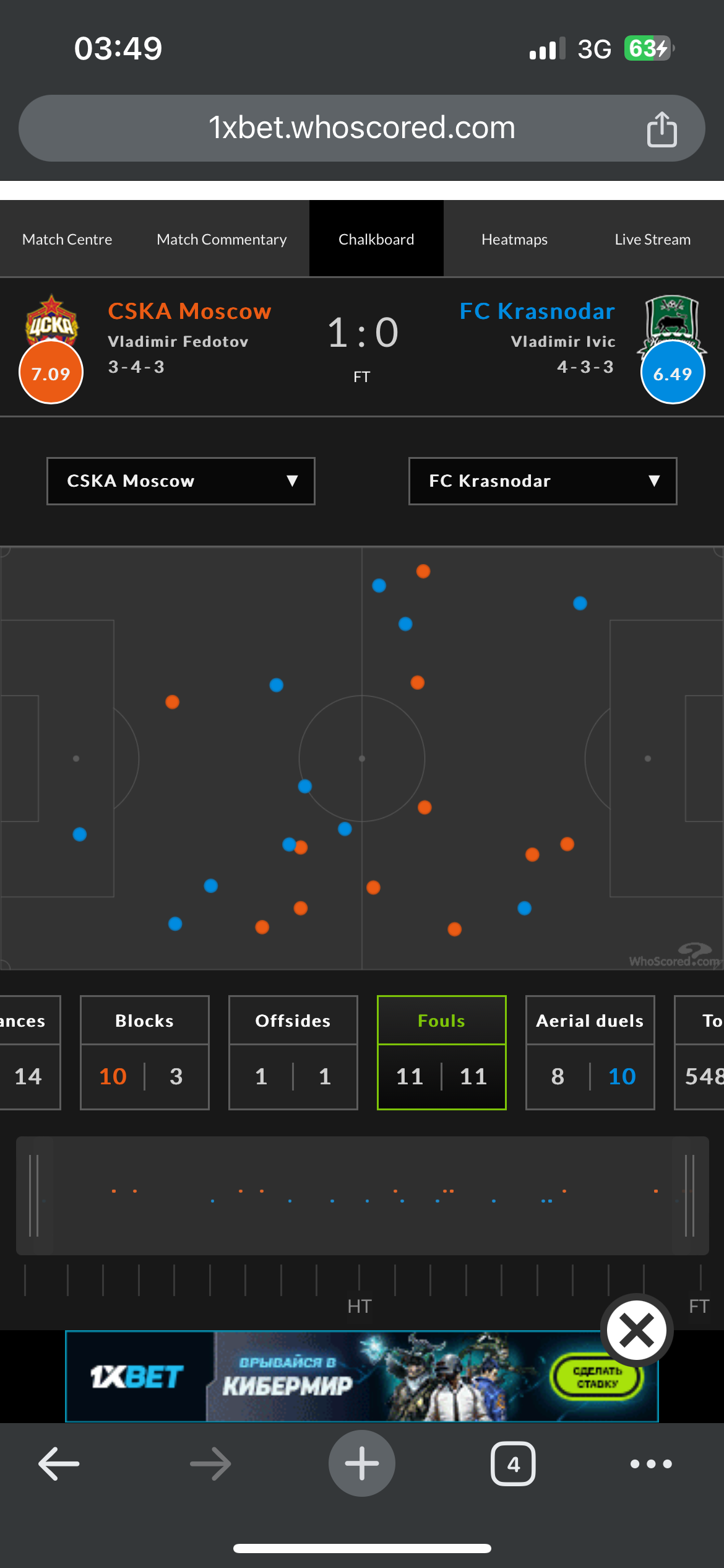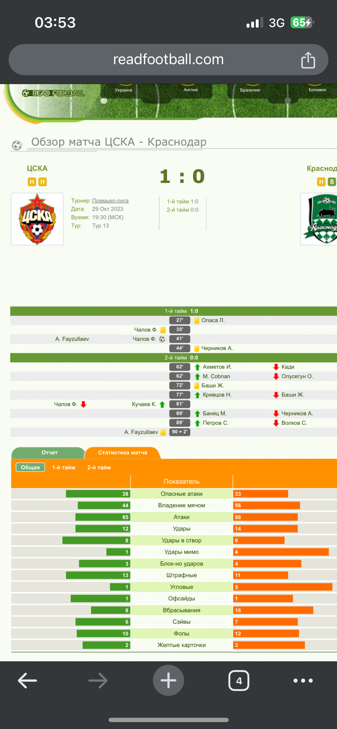 Матч ЦСКА Краснодар , ставка была 24,5 меньше по фолам на матч, на всех статистических ресурсах данный Тотал не был пробит, я пересмотрев несколько раз данный матч уже после, могу с уверенностью заявить , что данный Тотал не был пробит в матче, там было 22 фола. Но компания фонбет опираясь на недоступного источника Runningball(который видимо уже не первый раз ошибается) посчитала что Тотал по фолам 11-14 , выдумав фолы которых не было по игре и не в одном протоколе не зафиксированы. Естественно фонбет от меня как клиента полностью отстранился, а выигрыш там на секундочку был 17000 рублей. Вот так легко можно обмануть клиента компании, который с ней уже 4 года.Разбираться никто не хочет и помогать соответствннно. Самое интересное даже на их источнике в приложении фолы указаны в количестве 10-12. Вот так.