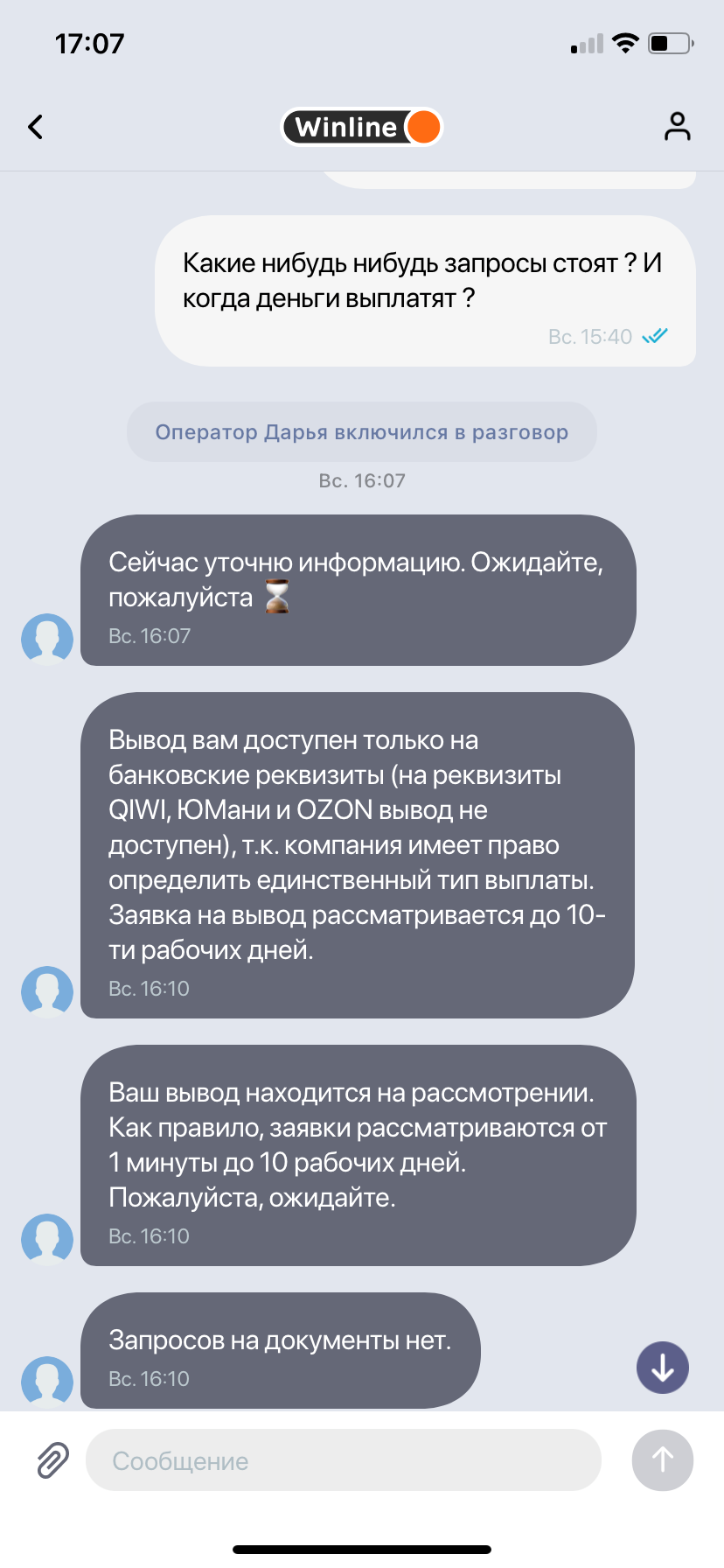 Не хотят выводить деньги ! Больше года проблема , не знаю что делать . Буду подавать в суд , я военный пенсионер . Прикладываю документы - выводов 0, вводов 150000 и 0 выплат. Итак… ждал ровно год разблокировки аккаунта, разблокировали . Потом видеовериф,полная верификация . Ни каких вилок ни каких нарушений . Все разрешили вывод , тянули 10 дней, запросили - банковские реквизиты, потом с печатью , потом селфи на фоне ставок , потом прописку в паспорте . 2 дня им писал - прикладываю скрин- все нормально ? Вывод разрешен ? Да, вывод разрешен, запросов на документов нет!сегодня утром захожу на счет - обработан ли запрос, он опять отменен и опять ждать новый ! Это ужас какой, помогите пожалуйста , я не знаю куда идти и что делать???