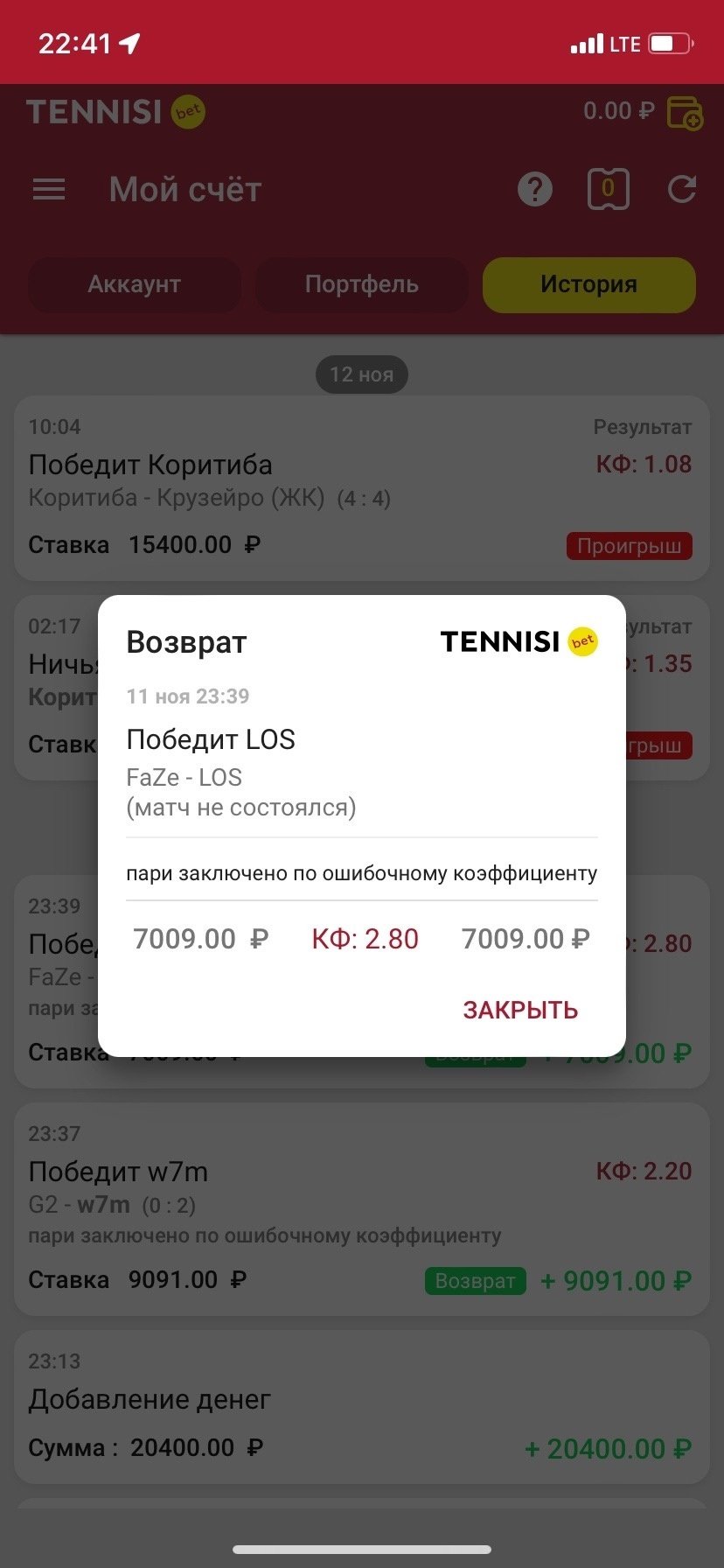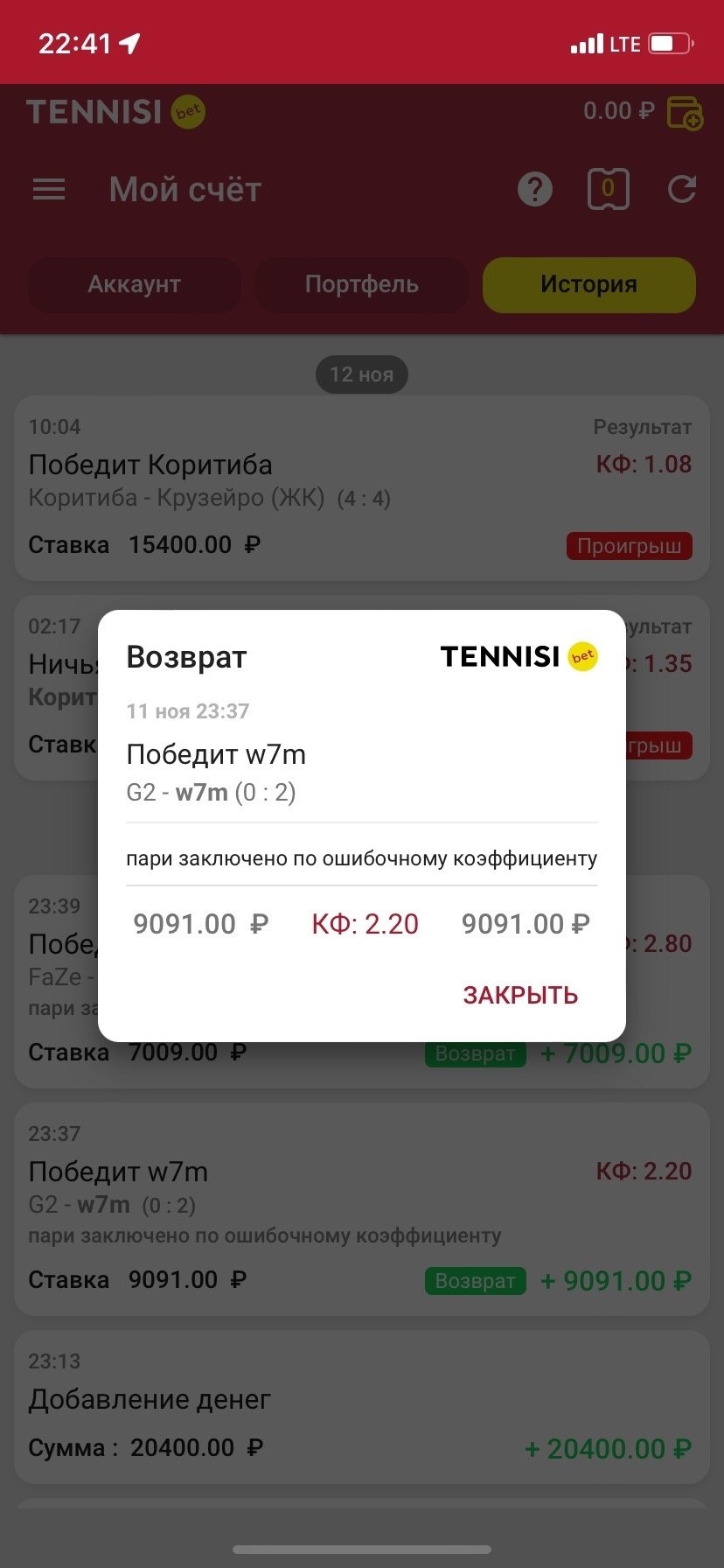 здравствуйте вчера пополнил счет в этой бк и сделал две ставки, ставки рассчитали возвратом ( причина некорректные коэффициенты) после чего не дали вывести деньги со счета и сказали что нужно их отыграть, хотя по логике при возврате деньги умножаются на 1х коэффициент и можно выводить надеюсь вы поможете добиться расчета ставок победой на этих бк номеров пари у них нету, но скриншоты все сделаны