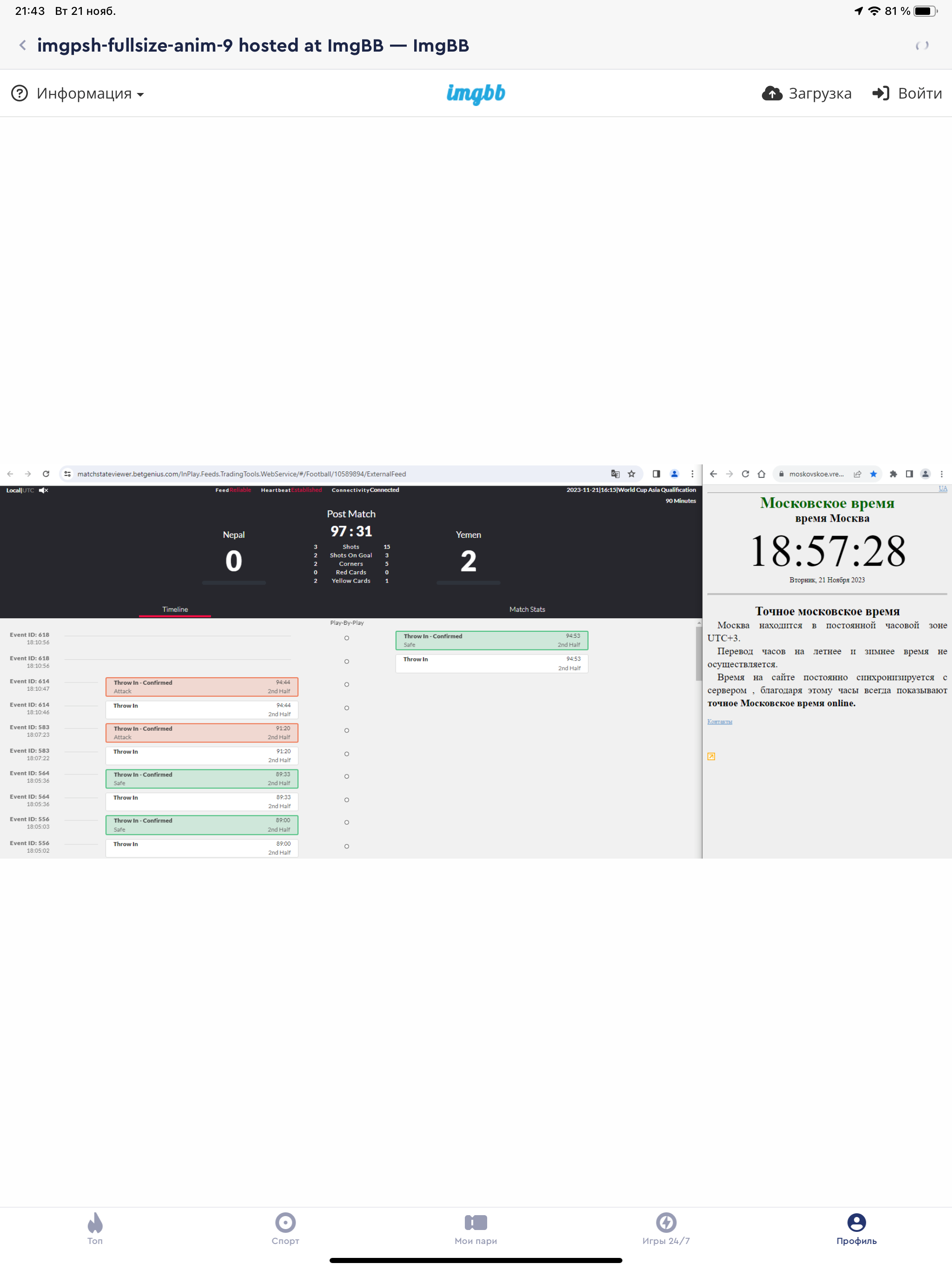 Добрый вечер. Сделал в данной БК ставку на вброс аутов > 44,5 в матче Непал-Йемен. Зная, что итог по аутам в таком матче я не найду после игры ни на одном ресурсе, включил трансляцию матча в приложении Фонбет. Но с трансляцией матча возникли проблемы, картинки не было, как не смог я ее найти вообще ни на одном ресурсе. Трансляция матча началась только с 20-й минуты, и я уже тогда почуял неладное) Так в итоге и получилось - пари мне рассчитали проигрышем с результатом 18:22. Я конечно же написал в поддержку, и сразу обозначил про недоступность трансляции до 20 минуты. Мне ответили, что пари рассчитано верно, и прислали 6 ссылок-скринов (прилагаю их). По этим скринам видно, что расчет аутов начал вестись с 19:19, то есть с 20-й минуты матча. Я более чем уверен, что данное пари я выиграл, но я не просил засчитать мне победу (т. к. нет корректного результата по аутам), а прошу произвести возврат ставки. Мне отказали, предложив предоставить мой источник информации, которого у меня нет. Ни один стат сайт не дает результат по аутам в данном матче. Видеозапись матча тоже найти не удается. Прошу посодействовать в возврате ставки по данному пари в связи с невозможностью корректного расчета данных по аутам. Спасибо.
