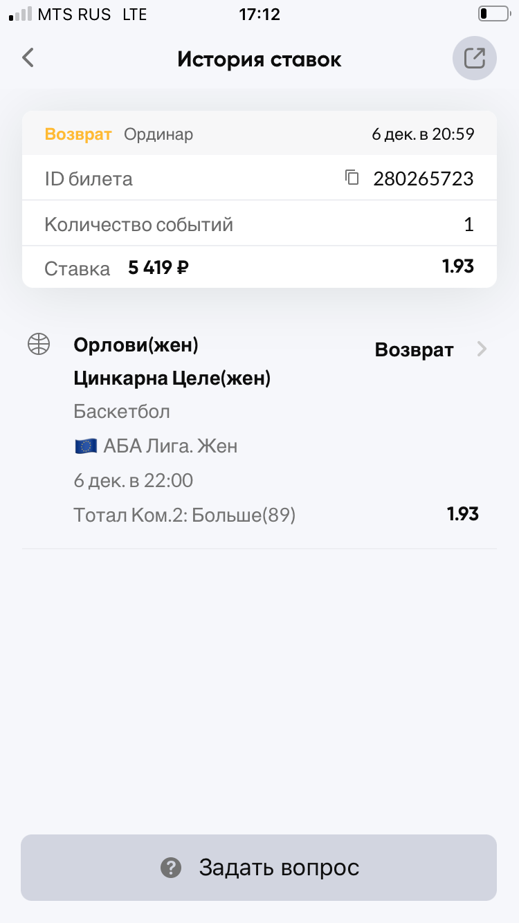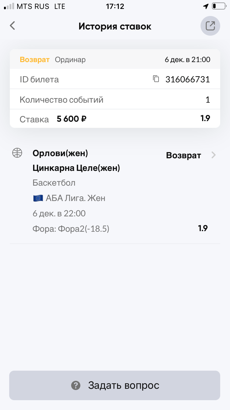 Совершил 6 ставок,по линии на баскетбольный матч, на фору и индивидуальный Тотал 2 больше,после выигрыша букмекер,рассчитал ставку с кэфом 1(возврат),от оператора получил ответ, «подозрения матча в не честной игре»,но другим игрокам,те же самые ставки,выплатили,это как,кому они хотят тому платят?прошу разобраться это мошенничество!