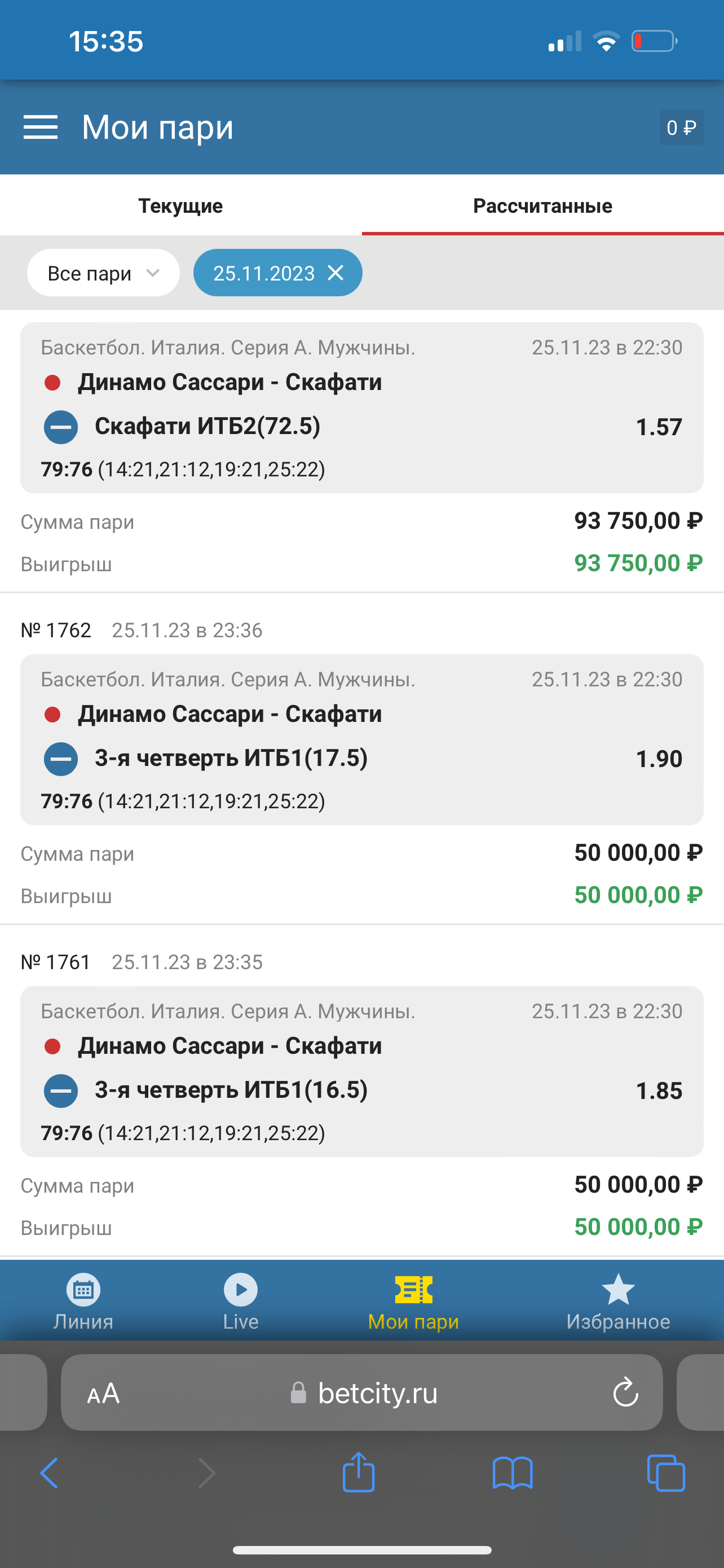 Пополнил я значит на сто тысяч рублей , ставил на баскетбол ставил по 50 тысяч 2-3-4 периоды , думал проиграю ну ставка каким-то чудом дошла забили за 2 минуты нужные 8 очков , брал индивидуальный больше , сделал потом еще две ставки этот же матч чудом выигрались хотя кф был 1,7 в итоге баланс 290к , хотел вывести пишут что по тех причинам вывод запрещен и на минуточку у меня Вип аккаунт , сказали нужно пройти верификацию, отправил им все документы , сказали надо пройти еще видеовериф через 3 дня чтоб показать через что ставил , показал им и паспорт и через что ставил , убедились что это я , думаю ну все могу вывести деньги , захожу а там возврат все 5 ставок подряд 2-3-4 периода , спрашиваю че за дела говорят техническое ошибка имеем право что хотим делать , попросил развернутее дать ответ сказали что коэф на пари был указан некоректно ,исход на момент заключения пари уже был однозначно определен , а матч был между прочем чемпионат Италии Сериа А , сравнивая с другими бк там не было никаких ошибок , сказать что там однозначно все было определено🤔 после моей ставки в течение 7 минут до последней секунды я думал ставка проиграется сам , а она выиграла на последних секундах а у них значит однозначно все