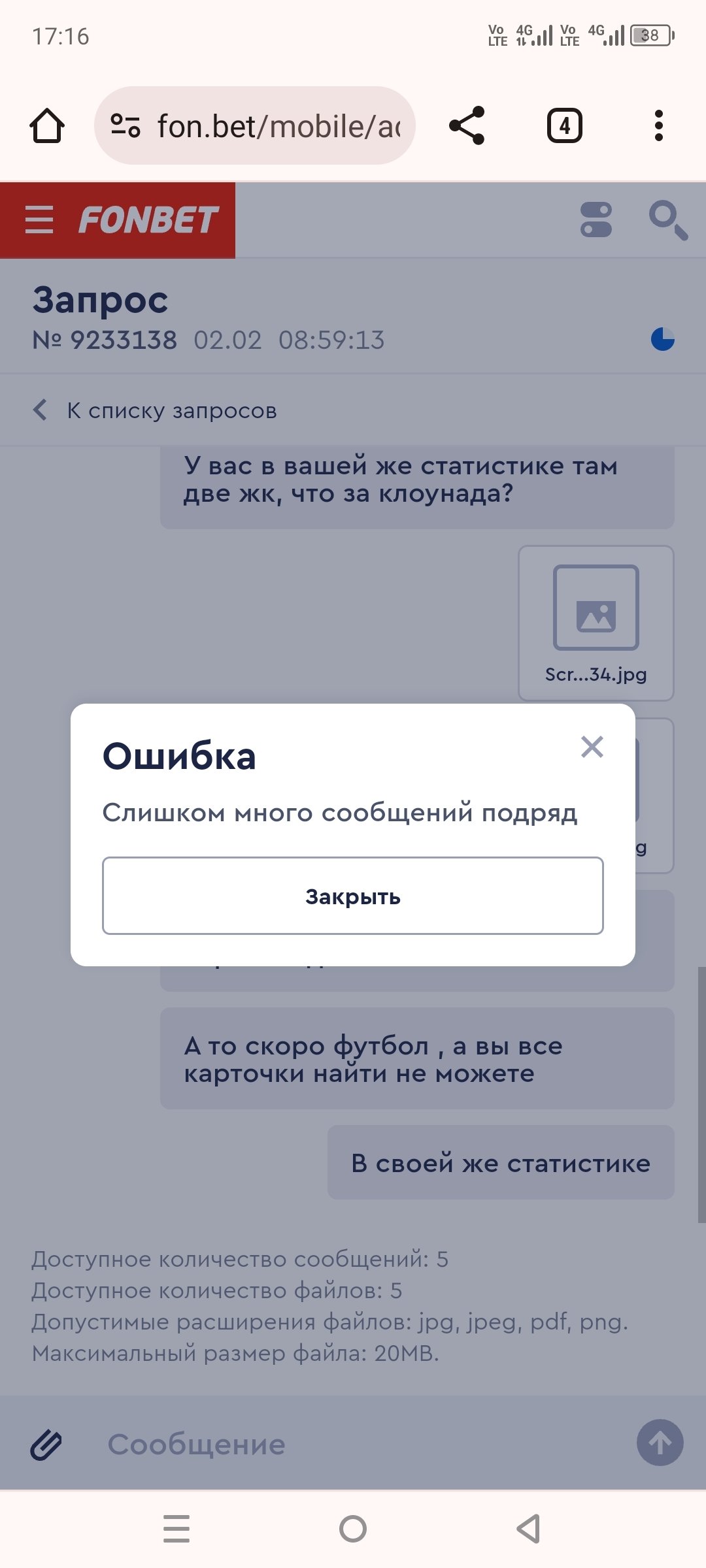 В очередной раз Фонбет пробивает дно. Как все знают реал получил вторую жк на 92й минуте. Видимо ее позже занесли в протокол, но на сайте ла лиги она есть, на любимом в случае споров самим фоном епсн она тоже есть. А неадекватный саппорт фона несет какую то чушь про трансляцию и про то что сайт ла лиги и епсн вдруг стали недостоверными источниками лод . Типа раз не показали в трансляции значит не было) а на протокол вообще плевать я так понимаю. Самое смешное что тчуамени , который и получил эту же официально пропускает Мадридское дерби и об этом куча новостей везде. Доколе Фонбет будет рассчитывать ставки как хочет? И это топлига, а не чемпионат села какой то. Рассчитайте мой пресс как полагается, а не валяйте дурачка. Скатились совсем, а когда то лучший бук в РФ был