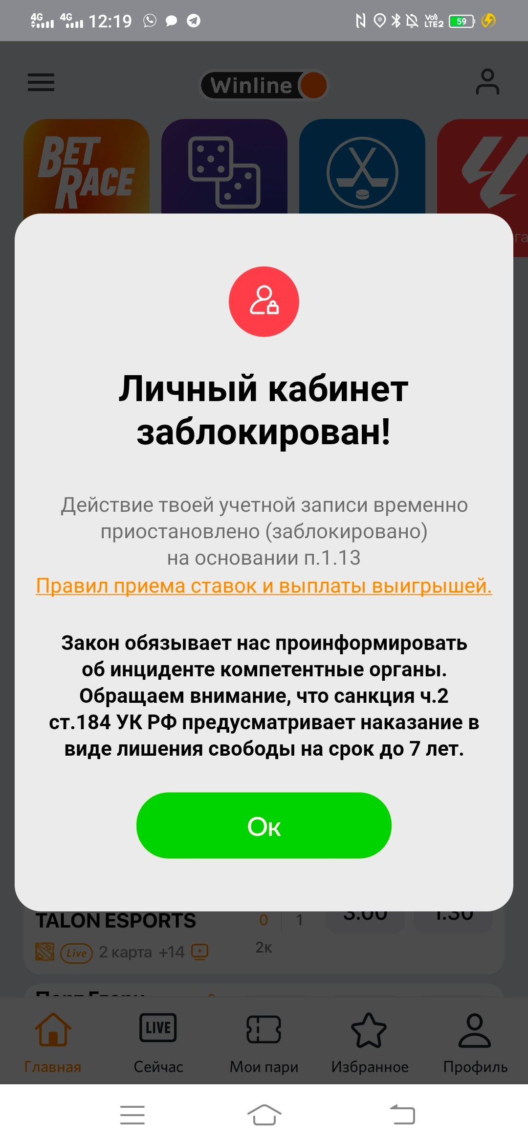 По информации от букмекера, на текущий момент проводится проверка по соблюдению правил Честной игры. Аккаунт заблокирован на срок до 1 года, согласно п.п. 1.13. по решению СБ за нарушение правил – использование чужого платежного средства. Действия БК в рамках правил.