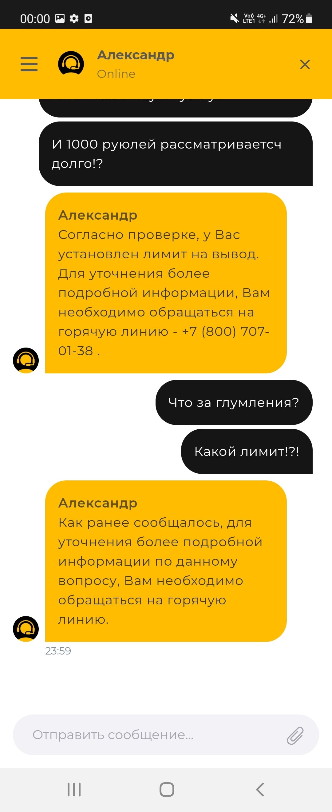 Доброй ночи. Заблокировали счёт в ноябре, только сегодня написали на почту что не сотрудничают со мной, ставить и пополнять не могу, только вывести. 100 дней ожидания и плюс лимит на вывод. Неизвестно какой, может 1000 рублей в месяц или в неделю. Безнаказанность полнейшая, делают что хотят.