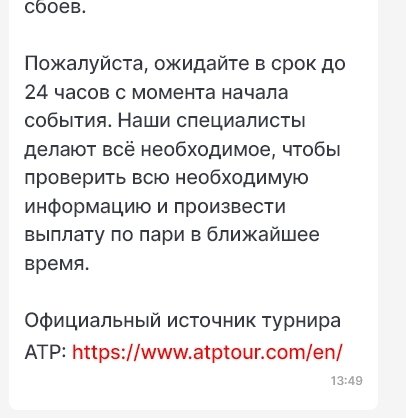Здравствуйте. Контора внаглую рассчитала выигрышную ставку как возврат, ссылаясь на пункт правил .6. Хотя исход ПЕРВОГО гейма ТРЕТЬЕГО сета был известен на момент отказа Вальехо. Комментарий БК прикладываю, ссылки на официальные ресурсы — тоже. Также 4-0 в третьем сете есть и во Флэшскоре, и в Софаскоре. По какой причине контора дала возврат?