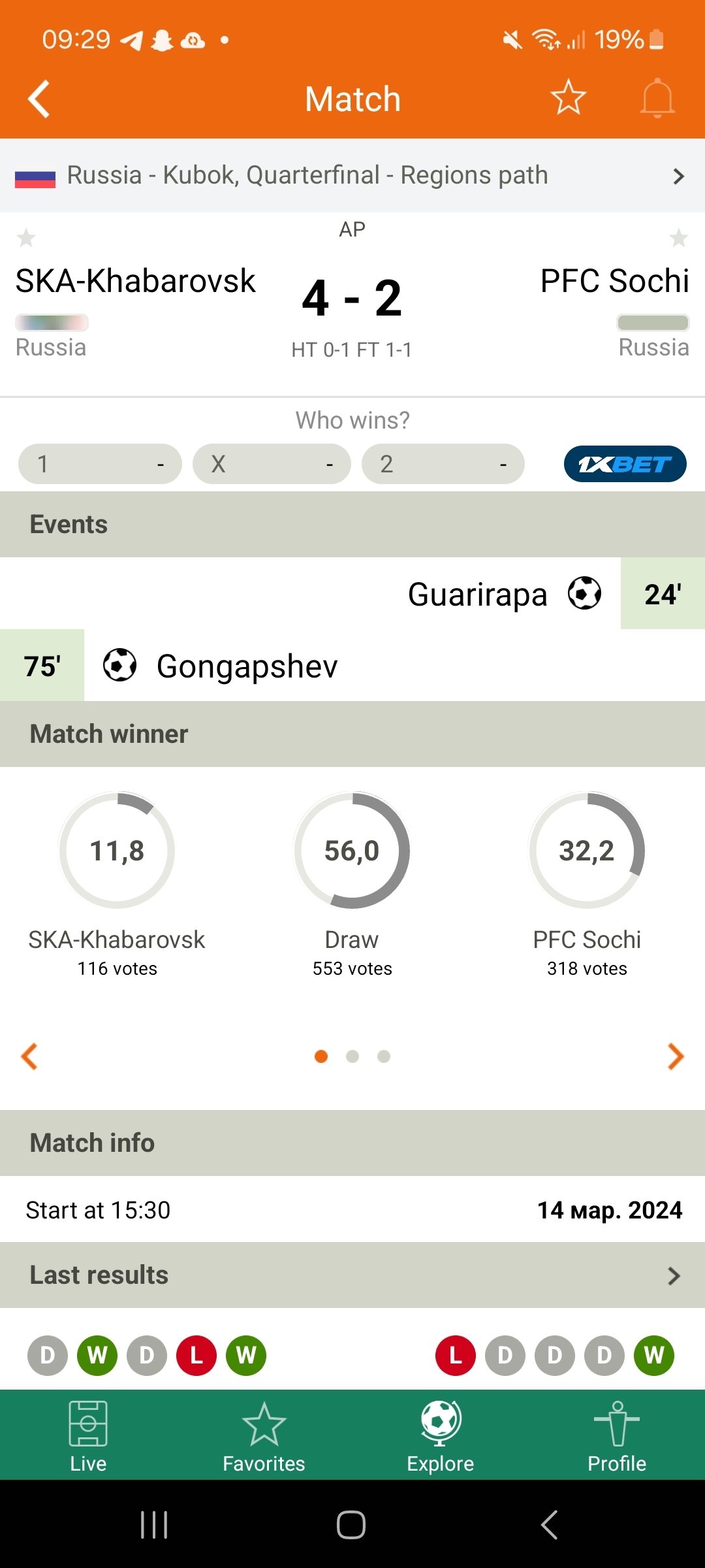 Сделал ставку на фонбет кубок России путь регионов СКА Хабаровск-Сочи что будет гол до окончания 23 минуты гол забили на 22 минуте ставка прошлаа через время сделали проигрыш якобы гол был забит на 24 минуте