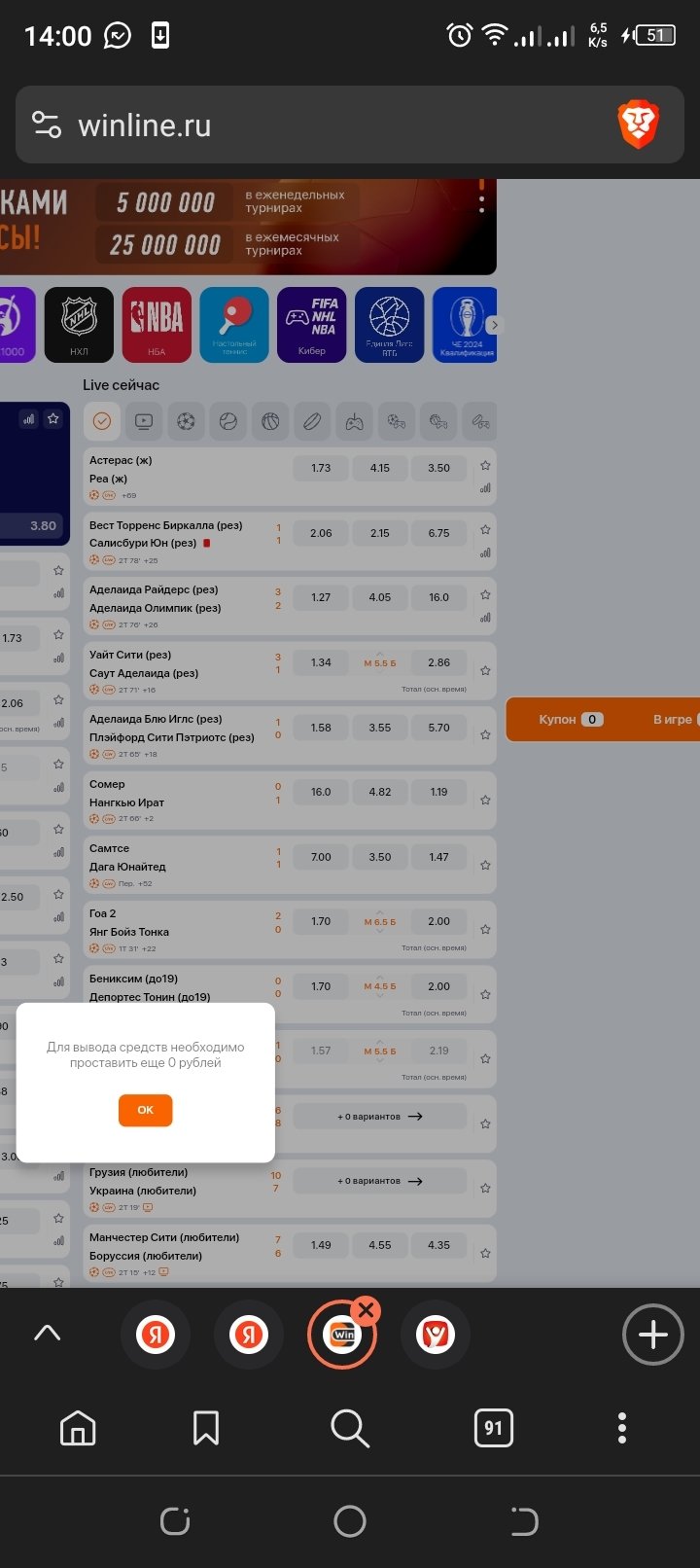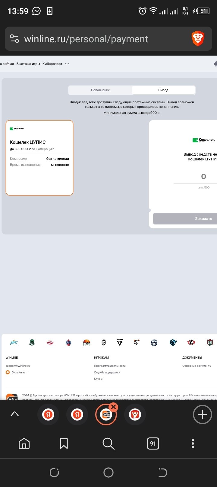 Не ставил с 2021 года, т к много проиграл и на балансе оставил сумму 368 т р, решил спустя 3 года забрать свои деньги. Букмекер winline запросил верификацию, прошёл её успешно. Далее для вывода оставили способ только на расчетный счет. Создал заявку на расчетный счет. Букмекер запросил фото из банка расчетного счета с ФИО, отправил им. Далее запросили распечатанный вид реквизитов расчетного счета с печатью, сходил в банк отправил фото. Сразу же запросили селфи с паспортом + расчетный счет на фоне последних трёх ставок, с 4 попытки сделал данное селфи. Далее запросили фото прописки из паспорта, отправил . Позвонил на горячую линию, сказали , что вывод доступен только на цупис, но при выводе на цупис пишет ошибка 39 обратитесь в поддержку, обратился, сказали техническая ошибка и как ее исправить не знают и сказали уменьшить сумму вывода Максимум даёт букмекер поставить 14 т р из 368 т р. Думал так частями и буду выводить, но в итоге заявка на вывод просто висит в приложении на рассмотрении и все. Прошу помочь забрать свои деньги