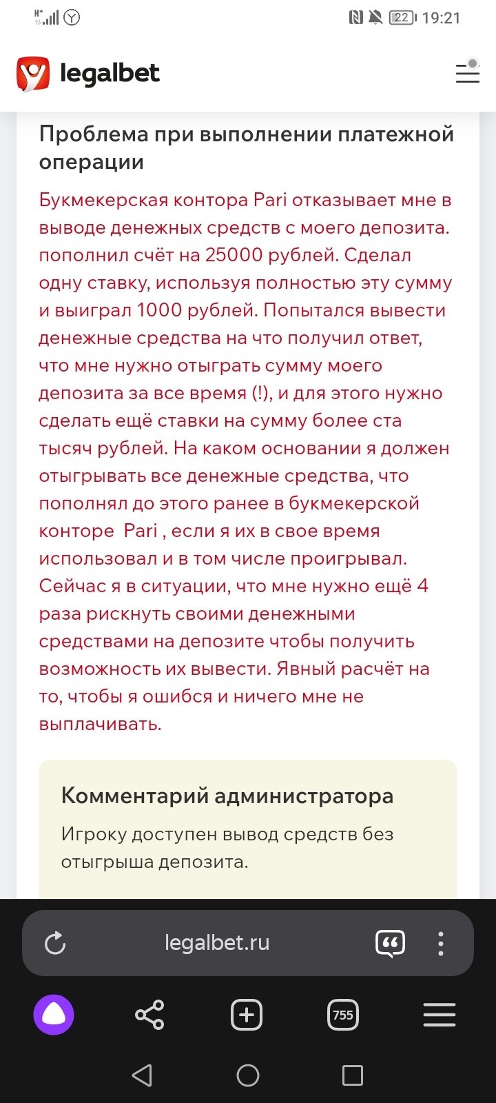 При попытке вывести свой выйгрыш 8400 рублей, меня известили о том, что мне нужно поставить ещё 13663 рубля чтобы я смог вывести деньги. После споров с оператором поддержки я поставил 13663 рубля на кибер спортивный матч с коэффициентом 1.1 и сразу после моей ставки ход матча стал меняться и естественно я все проиграл. Являюсь частым клиентом данный конторы и первый раз столкнулся с таким высасыванием денег и отказом в выплате. Считаю что подобные действия негативно влияют на репутацию компании и отталкивают клиентом, сам после подобного отношения пользоваться их услугами точно не буду.