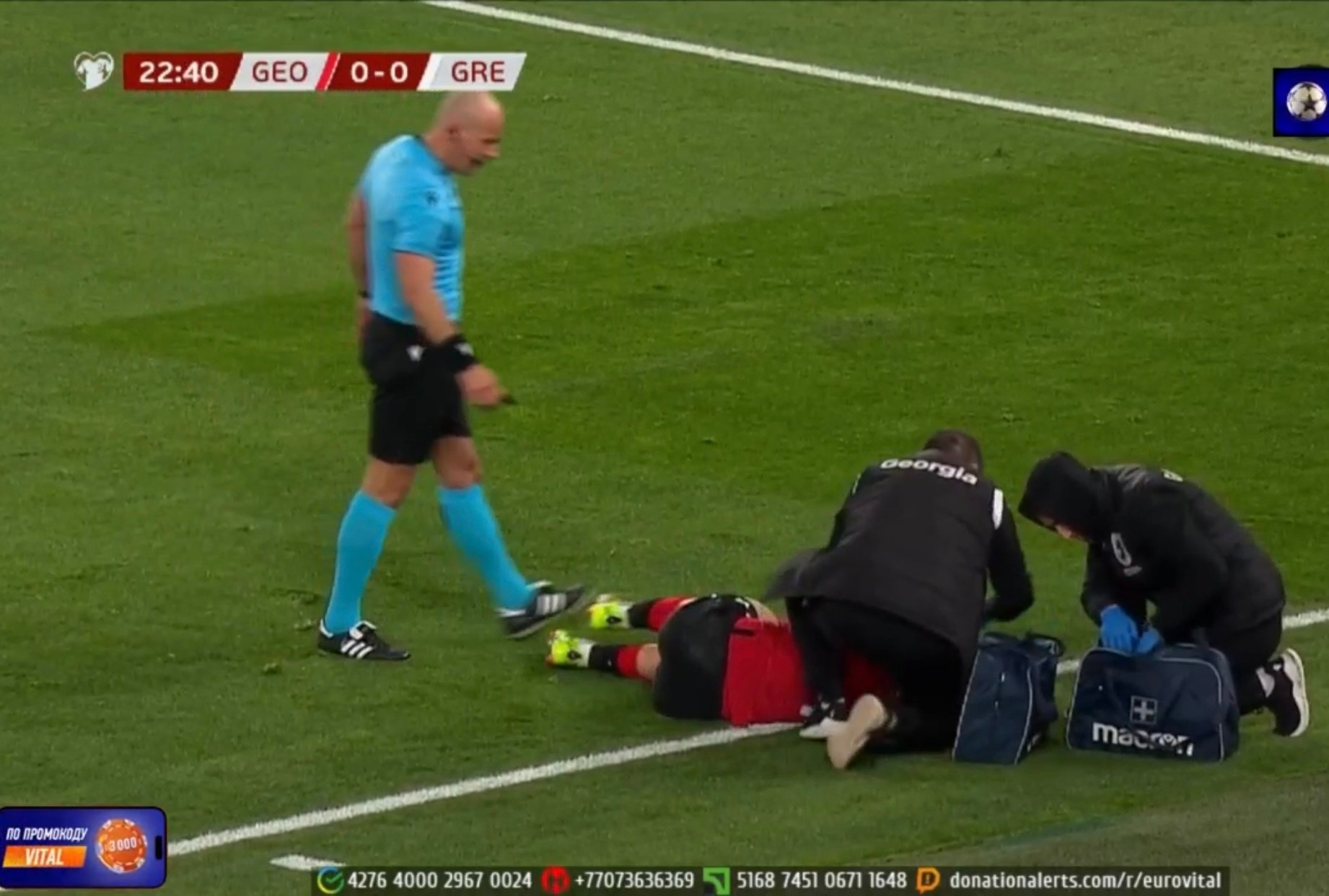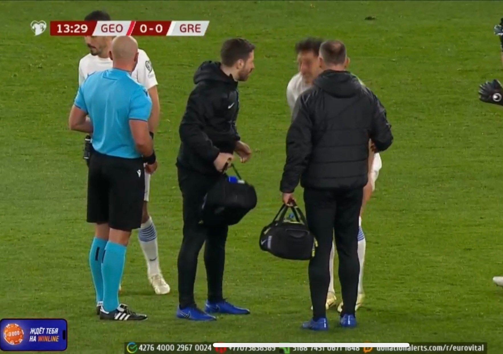 Вот одно из фото где мед бригада на поле и оказывает помощь игроку на поле, после чего игрок покинул поле и вернулся с разрешения судьи.