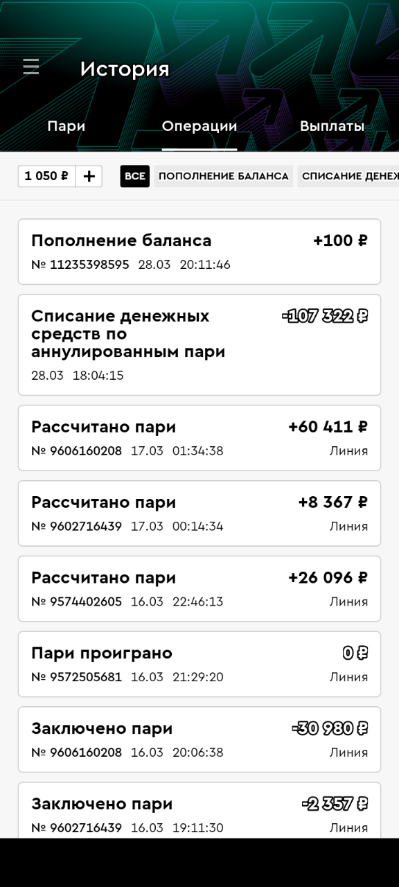 да.аннулировали баланс и все ставки.депозит был 36000.пять выигрышей подряд)))тут и затеяли проверку и чтобы не платить -аннулировали.если бы порезали или рассчитали с кэф.1 то и пусть подавятся.забрали даже депозит