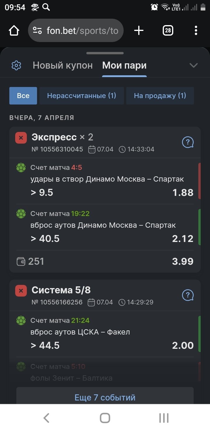 г. Поставил ставку на футбольный матч ДИНАМО СПАРТАК в этот же день, в которой одним из событий было тотал ударов в створ больше 8,5. На основании данных проверенных источников и тотал ударов в створ 4:6 в пользу Спартака.Однако Лига Ставок рассчитала ставку с результатом 4:4 и не предоставила ссылку на официальный источник по которому рассчитана ставка.Прошу помочь разобраться.Номер ставки 726253605682