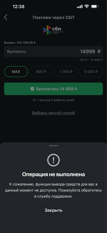 Блокировка вывода средств - верификация