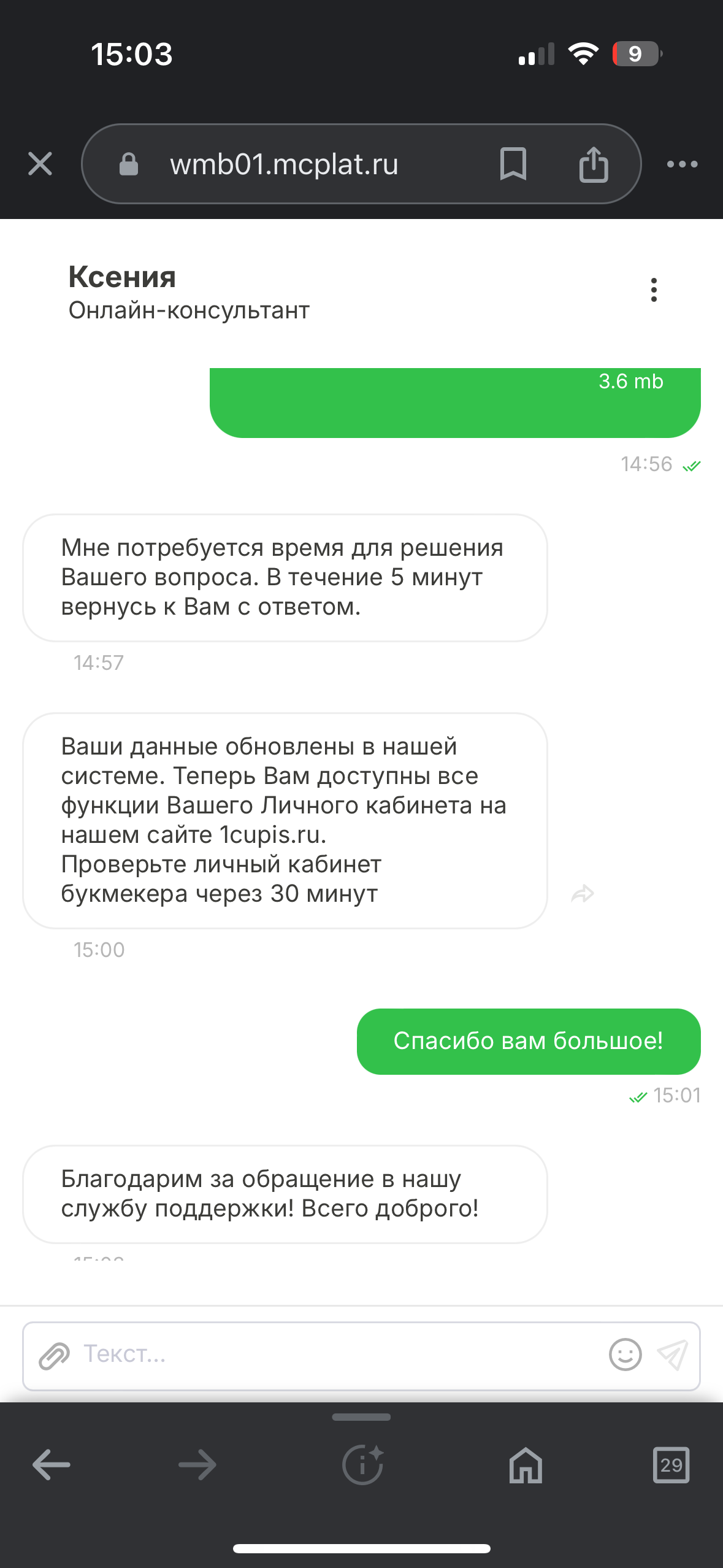 Со мной по прежнему кроме вас, так никто и не связался. В телеграмм не приходили сообщения, горячая линия Winline сбрасывает, в чате приложения тоже без ответа, на почту думаю нет смысла писать. Каждый день я заказываю звонок, чтобы показать снилс или паспорт😿.