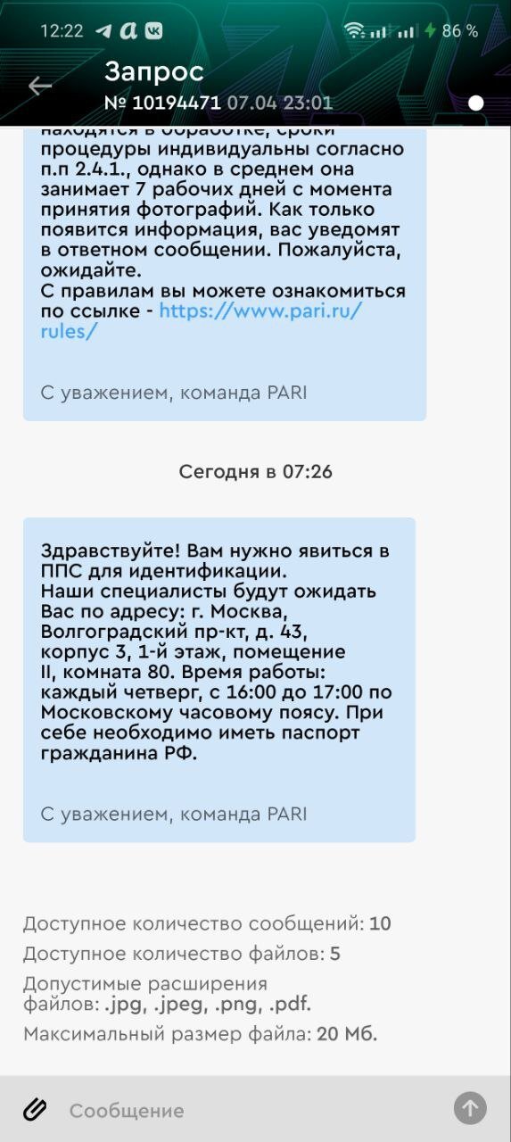 Запросили фотографии, я повторюсь, я выслал все запрошенные фото своего паспорта, паспорт на просвет, селфи с надписью, фото с номером своей карты.