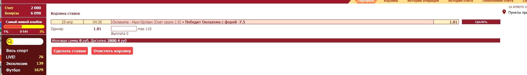 да они мне еще такую ***** сделали еще я не знаю ну это просто уже ошалеть. Что значит я не могу проиграть или я им только должен проигрывать? Ну даже это фиг с ним матч то сегодня играли сыграли 93:96 я так понял для этой ставки счета идут именно уже после 0-1 в серии иначе зачем даете такую ставку которую не возможно проиграть?))))) Что это за дичь