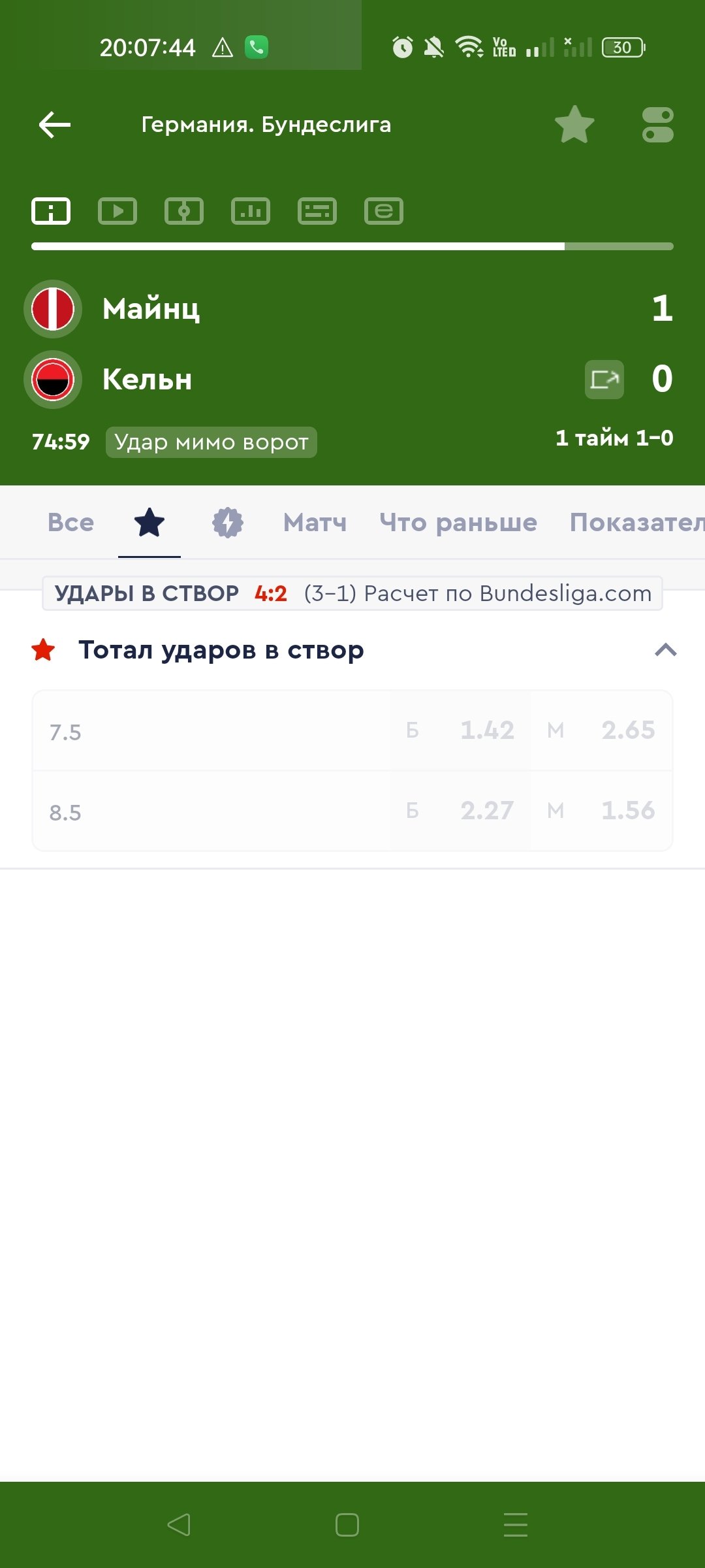 По информации от букмекера, на этот матч удары в створ в лайве не давали, никаких указаний об источнике в линии не было. Поэтому расчет произведен по общему правилу.